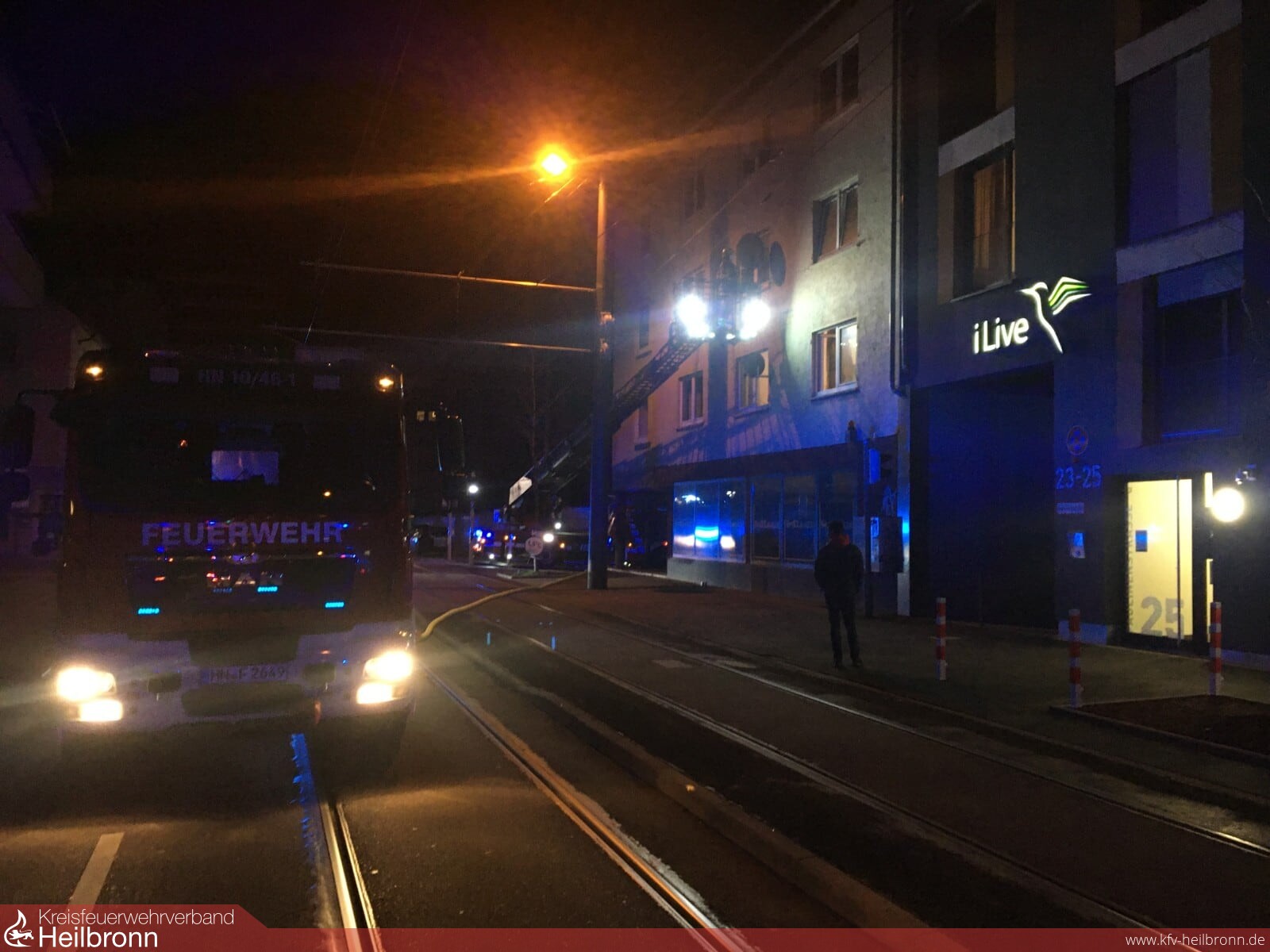 Kurz nach Mitternacht wurde die Feuerwehr über den Euronotruf 112 in die Paulinenstraße gerufen. Nachbarn hatten Rauch am Fenster im ersten Obergeschoss des Mehrfamilienhauses bemerkt und den Notruf abgesetzt. Beim Eintreffen vor Ort verließen einige Bewohner das Gebäude und wiesen die Einsatzkräfte auf eine weitere Person in der betroffenen Wohnung hin. Die Wohnungstür wurde mit einer Türramme geöffnet und die Person vorgefunden. Auf einem provisorischen Herd bestehend aus einem Campinggaskochfeld mit einer Propangasflasche, war ein Topf mit Essen in Brand geraten. Der Topf wurde ins Freie gebracht, die Wohnung belüftet und der Bewohner dem Rettungsdienst übergeben. Zur Herstellung der Wasserversorgung mussten Schlauchleitungen über das Schienennetz der Stadtbahn gelegt werden, weshalb der Verkehr über die Dauer der Einsatzmaßnahmen eingestellt wurde.