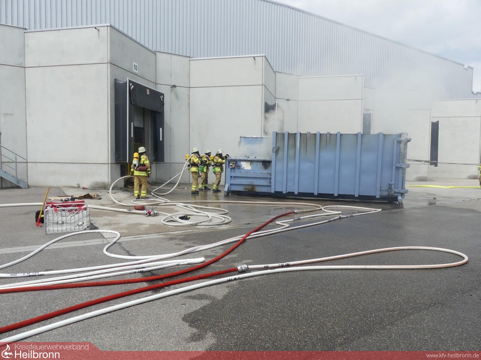 Um 11.42 Uhr wurde der Löschzug von der Integrierten Leitstelle zum Industriegebiet Böllinger Höfe alarmiert. Gemeldet war eine Rauchentwicklung aus einem Industriegebäude in der Pfaffenstraße. Bereits auf der Anfahrt konnte eine starke Rauchentwicklung festgestellt werden. An der Einsatzstelle war eine Müllpresse mit Kartonagen im Verladebereich in Brand geraten. Sämtliche Mitarbeiter hatten das Gebäude bereits verlassen. Durch das rasche Eingreifen der Feuerwehr konnte ein Übergreifen der Flammen auf das nebenstehende Firmengebäude verhindert werden. Die Presse wurde mit Hilfe der maschinellen Zugeinrichtung des Löschfahrzeuges vom Gebäude weggezogen. Im Anschluss kam ein Wechselladerfahrzeug der Feuerwehr zum Abkippen der brennenden Ladung zum Einsatz. Eine abschließende Lüftung der Halle erfolgte über den Großlüfter der Feuerwehr. Nach ersten Schätzungen entstand ein Sachschaden in Höhe vom ca. 20.000 Euro.
