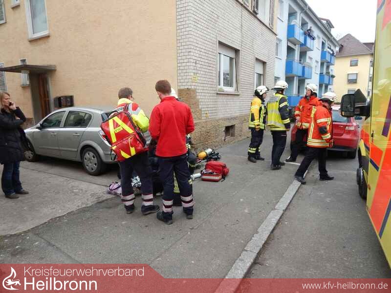 Beim Eintreffen der Feuerwehr vor Ort, stand die Eingangstür zur Brandwohnung offen. Die Bewohnerin versuchte einen brennenden Mülleimer in der verrauchten Küche zu löschen. Die Einsatzkräfte brachten die Frau umgehend ins Freie, wo sie kollabierte.