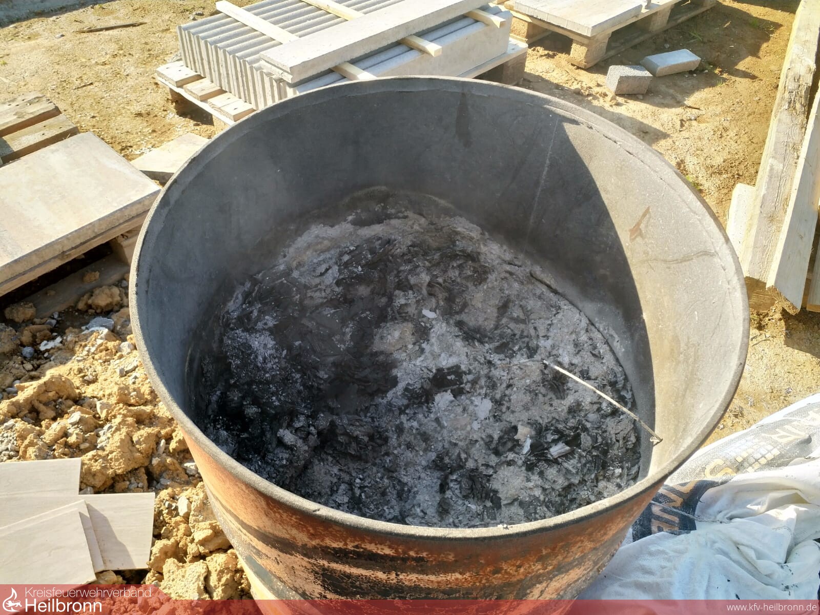 Beim Eintreffen der Einsatzkräfte war keine Rauchentwicklung mehr sichtbar. Erst nach langer Suche konnte der „Schadensort“ ausfindig gemacht werden. In einem Garten waren zuvor wohl mehrere Bauabfälle in einem Blechfass verbrannt worden. Da dieses samt Inhalt noch etwas Restwärme hatte, wurden kleinere Nachlöscharbeiten vorgenommen.