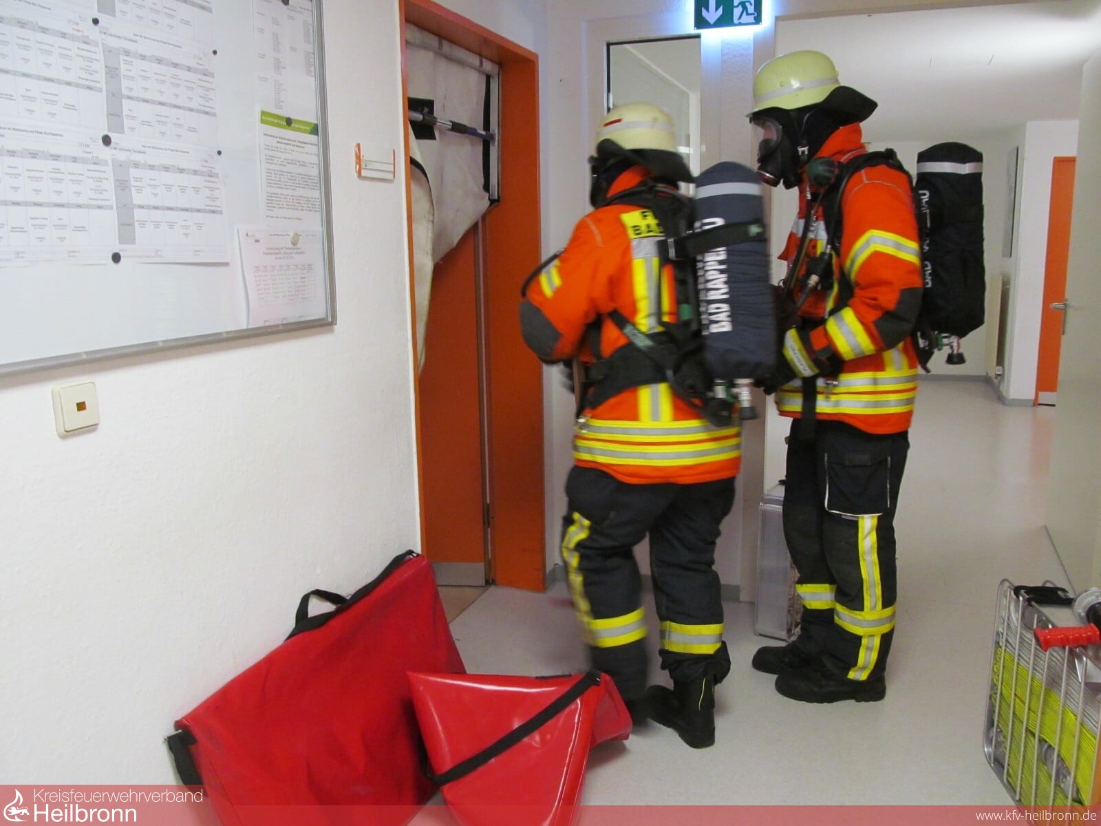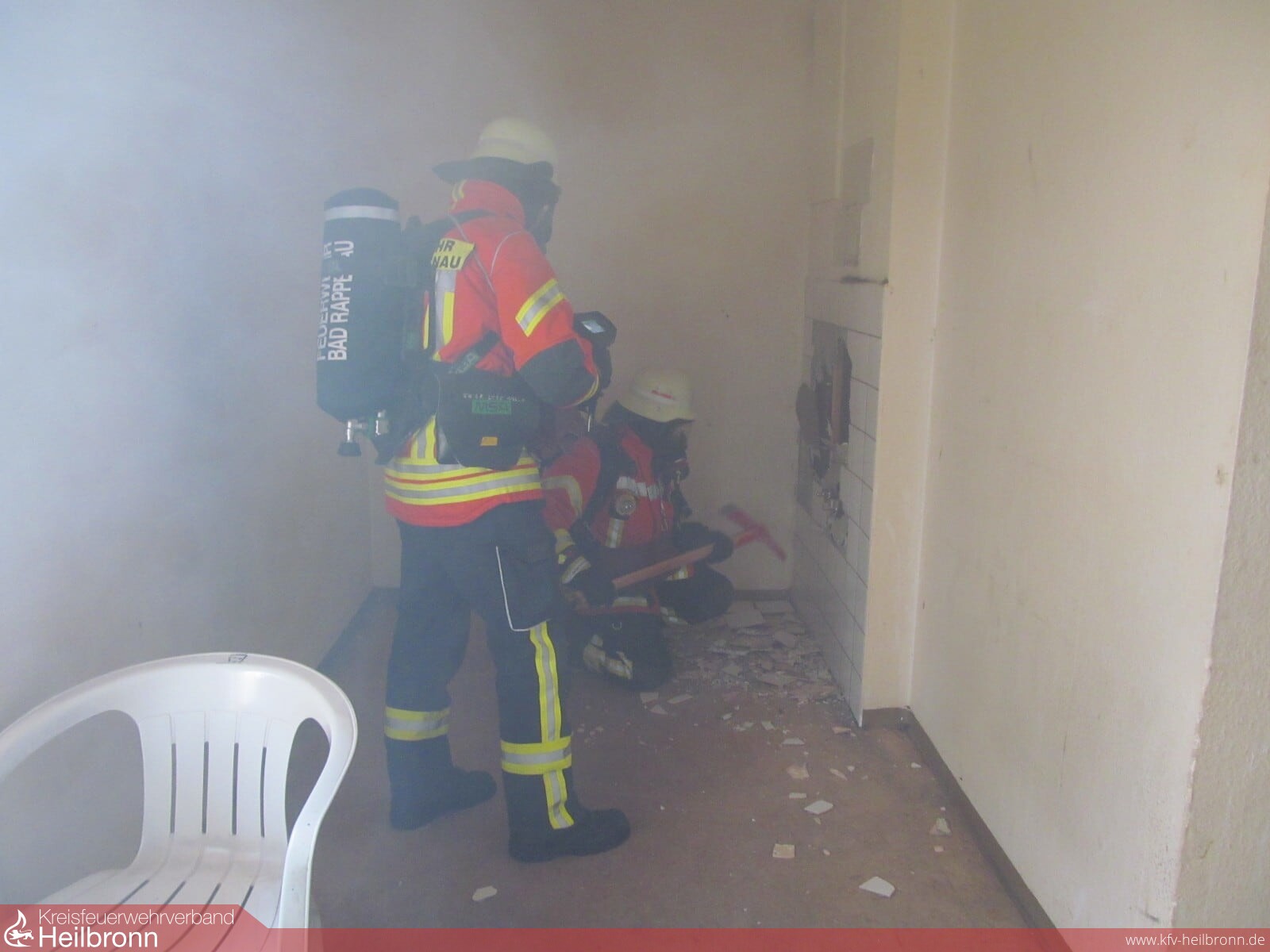 Zu einer ausgelösten Brandmeldeanlage in einer Pflegeeinrichtung wurden die Abteilungen Bad Rappenau, Heinsheim und Süd alarmiert. Bereits beim Eintreffen der ersten Einsatzkräfte aus Bad Rappenau hatten mehrere Rauchmelder angeschlagen. Nach der ersten Erkundung konnte eine Rauchentwicklung im Keller des Gebäudes sowie in der Zwischendecke festgestellt werden. Aufgrund der Verrauchung wurde vorsorglich die Schnelleinsatzgruppe des DRK alarmiert, um die Patienten zu betreuen, bis die Station wieder freigegeben war. Diese hatten bereits das Gebäude nach dem Brandmeldealarm verlassen. Als weitere Melder aufliefen, wurde eine erneute Erkundung in die Wege geleitet. Hierbei wurde eine Rauchentwicklung in zwei übereinander liegenden Zimmern festgestellt. Der Rauch zog aus der Wand der Zimmer. Diese wurden mittels der Feuerwehraxt geöffnet. Die in der Wand befindlichen Glutnester wurden mithilfe einer Kübelspritze abgelöscht. Wie die Glut in die Wand kam, ist nicht bekannt. Die Freiwillige Feuerwehr Bad Rappenau war mit 6 Fahrzeugen und 30 Mann im Einsatz.