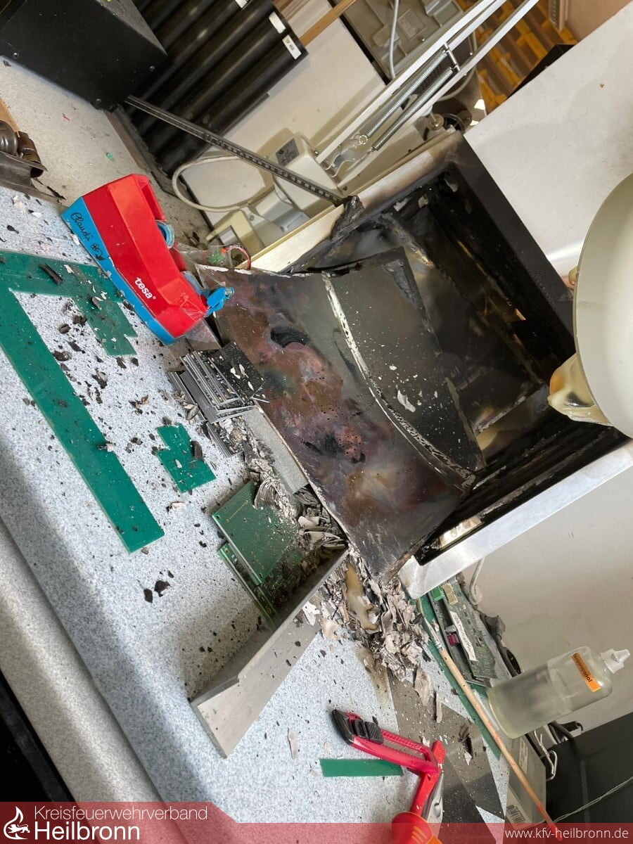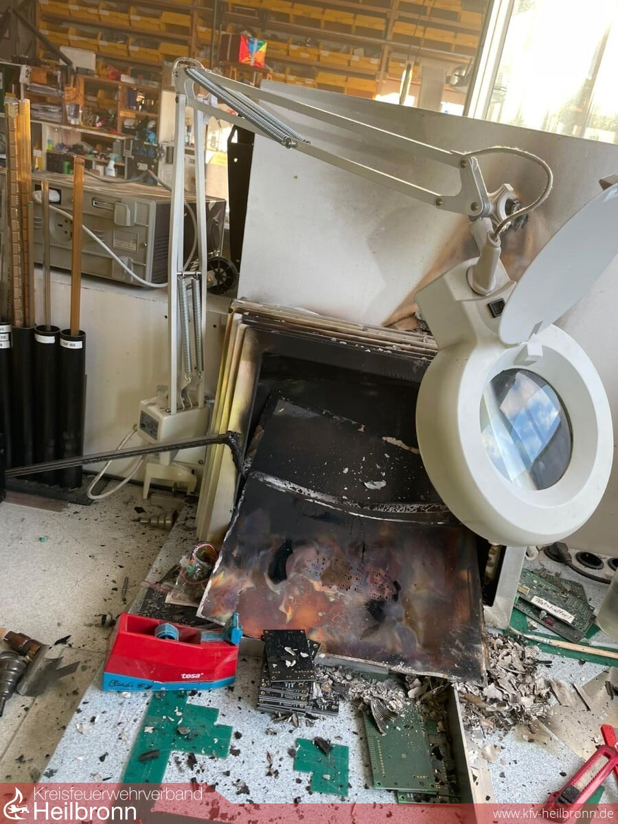 Durch eine aufmerksame Anwohnerin wurde Rauchentwicklung in einer Industriehalle im Industriegebiet Jagsthausen gemeldet. Nach der ersten Erkundung durch den Kommandanten der FFW Jagsthausen/Olnhausen wurde diese Meldung bestätigt. Der Angriffstrupp wurde unter Atemschutz zur weiteren Erkundung ins Gebäude geschickt. Dieser konnte die Brandstelle schnell lokalisieren, das Feuer war zu diesem Zeitpunkt bereits erloschen. Eine Arbeitslupe an einem Arbeitsplatz wurde durch die abendliche Sonneneinstrahlung zum Brennglas. Dieses entzündete die darunter befindlichen Materialien, die zu brennen/schmoren begannen. Die Räumlichkeiten wurden belüftet und konnten dem Geschäftsführer nach kurzer Zeit wieder übergeben werden.