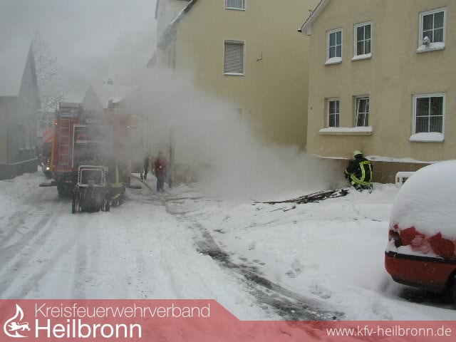 Zu einem Kellerbrand in der Bundschuhstraße rückte die Heilbronner Feuerwehr am Mittwoch gegen 10:51 Uhr aus. Aufgeschreckt durch den Alarm eines Haushaltsrauchmelders, bemerkten die beiden Bewohner den Brand im Keller des Einfamilienwohnhauses. Über ein gekipptes Fenster im Obergeschoss konnte der Rauch in das Gebäude eindringen und einen Alarm an dem Melder im Flur auslösen. Zwischen dem Wohnbereich und dem Kellerraum bestand keine unmittelbare Verbindung.