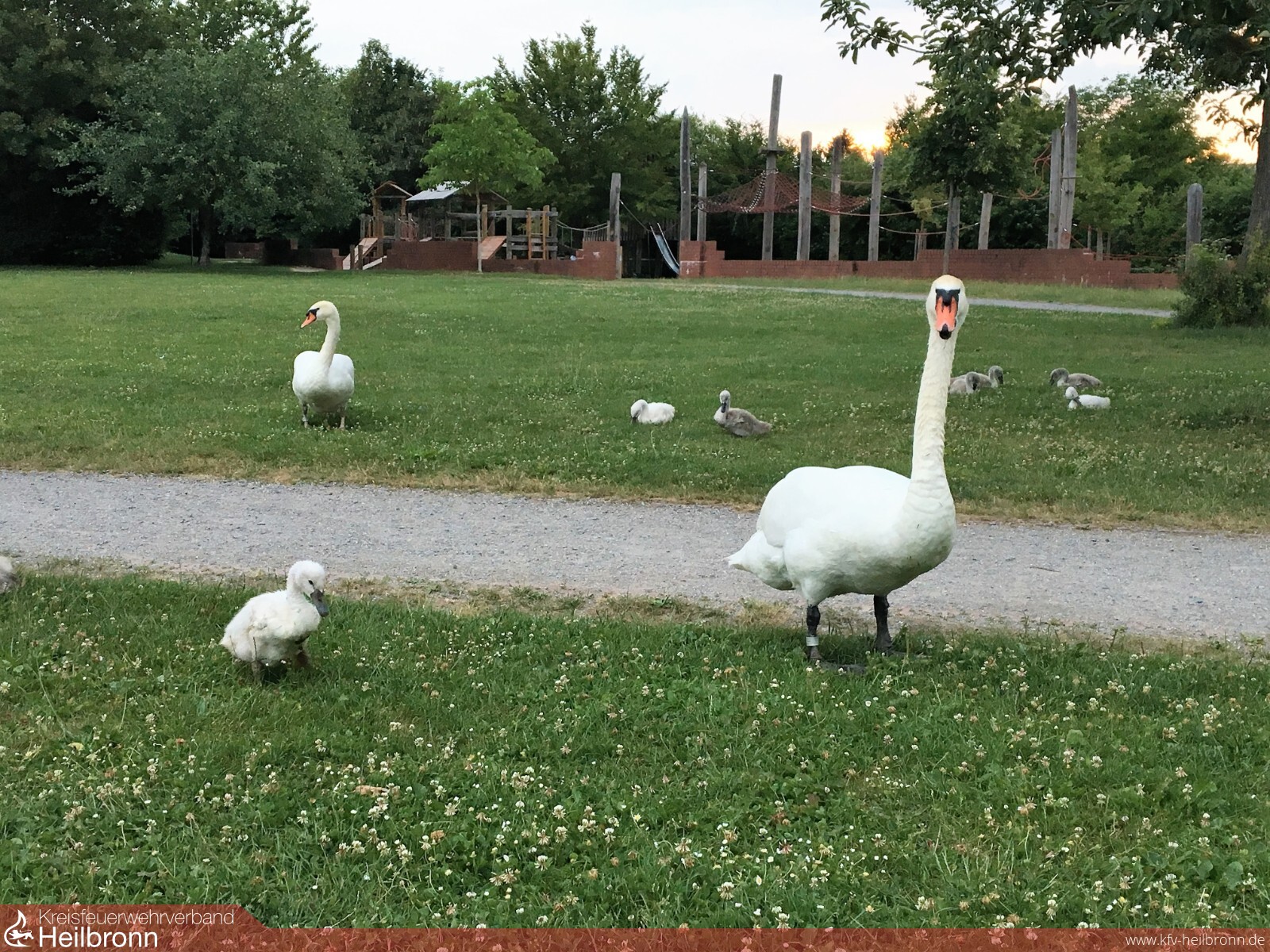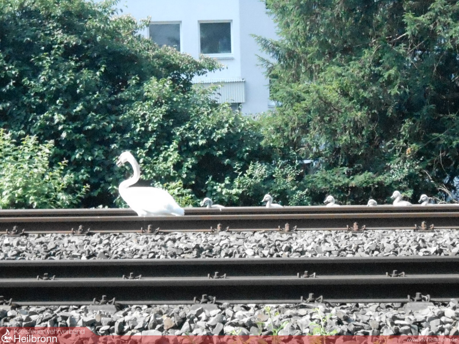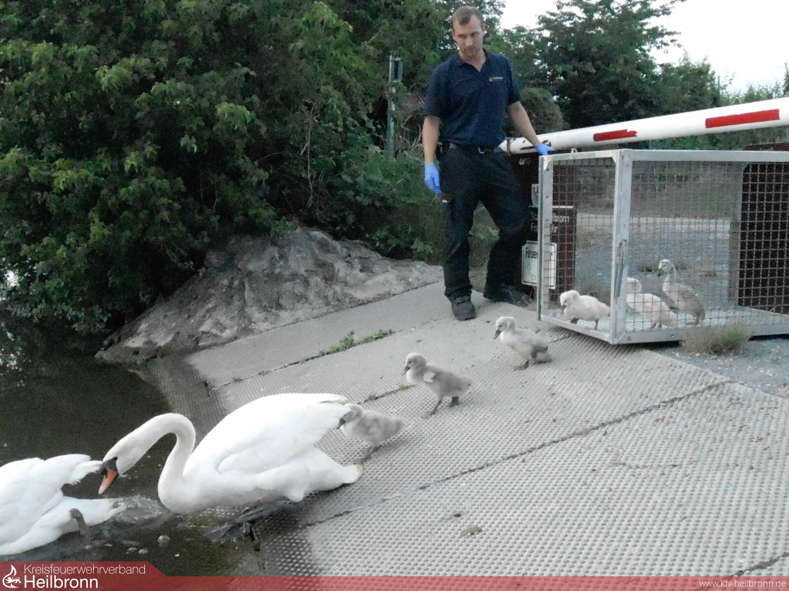 Einsatzkräfte der Feuerwehr und die Polizei fingen die Schwanenfamilie ein und siedelten diese in Absprache mit dem Veterinäramt in den Ziegeleipark nach Heilbronn-Böckingen um.