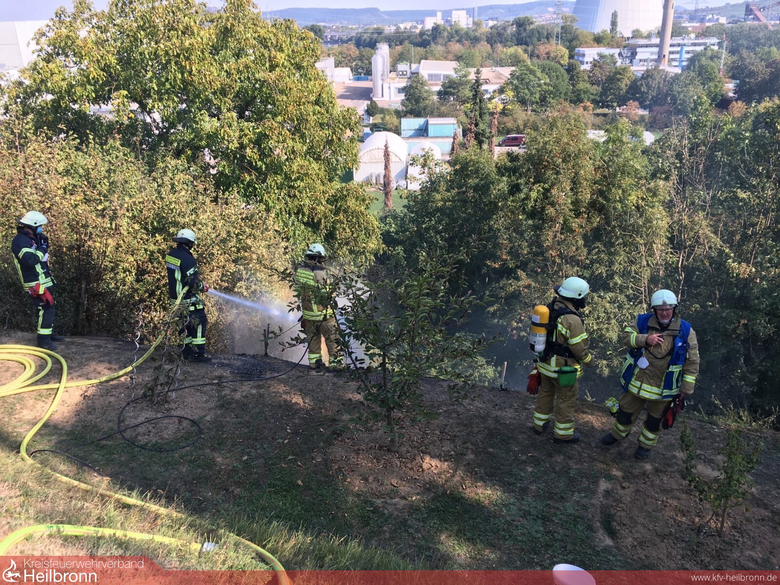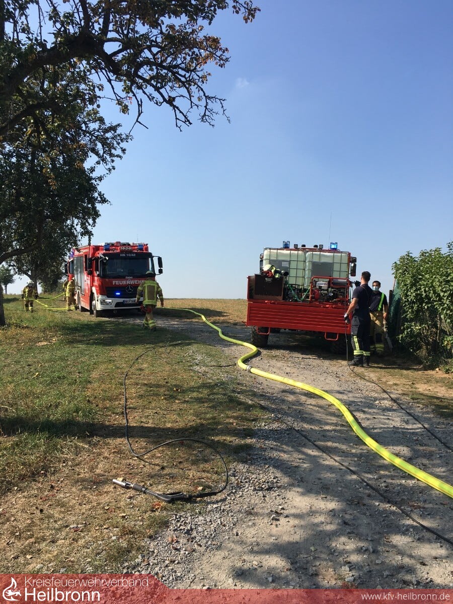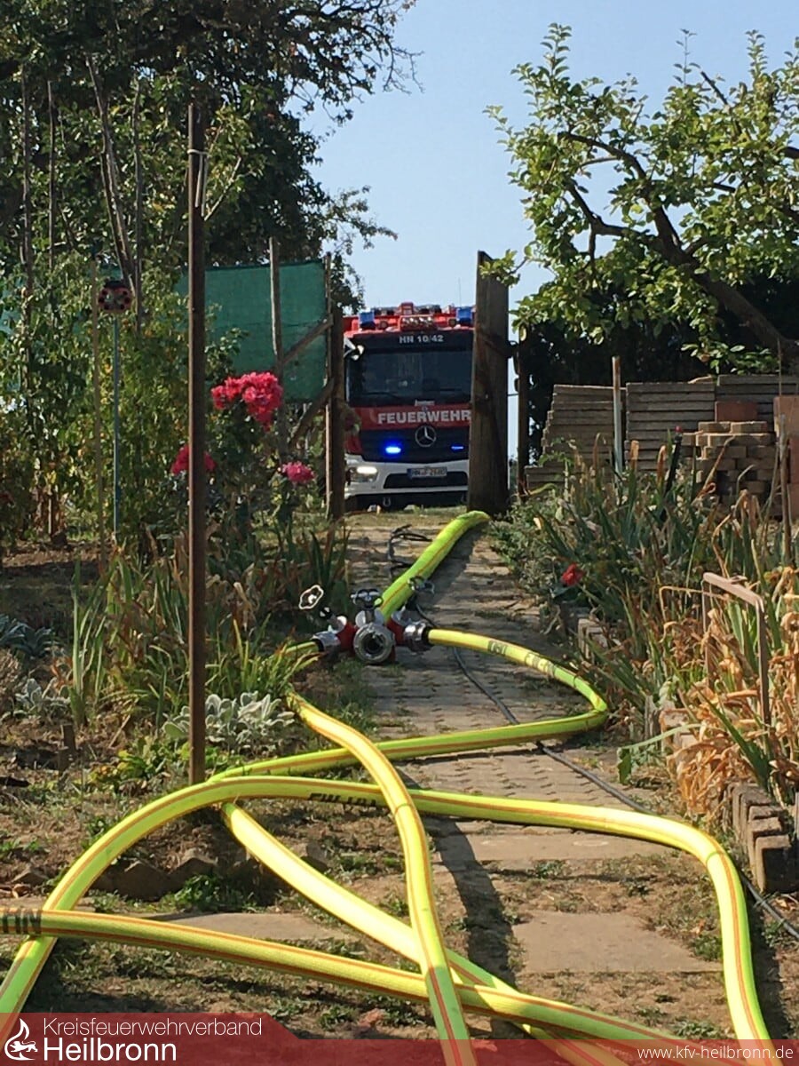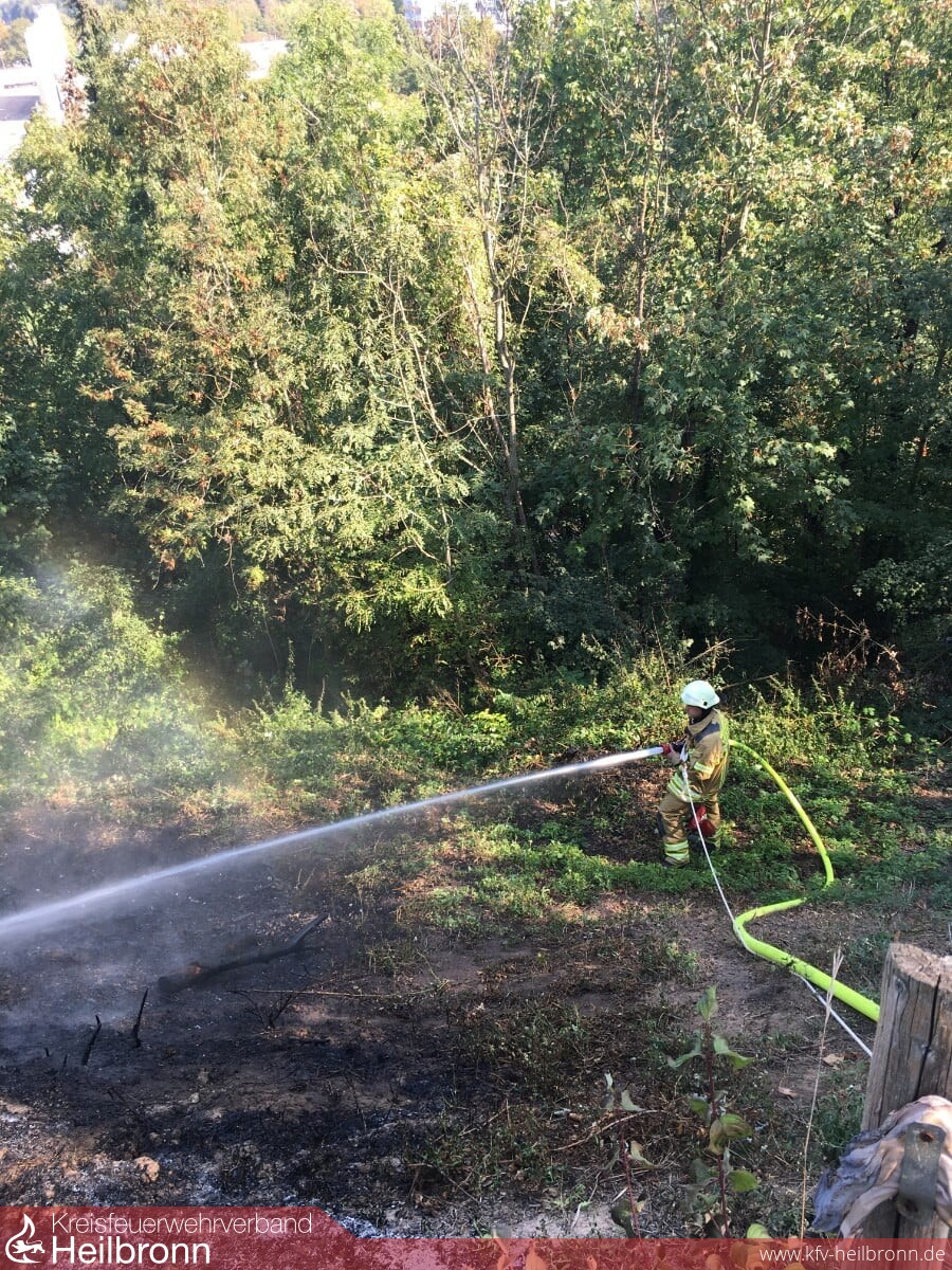 Zu einem Flächenbrand im nördlichen Stadtgebiet von Heilbronn wurde die Feuerwehr um 14.10 Uhr gerufen. Im Bereich einer Kleingartenanlage war vermutlich ein Reisigfeuer außer Kontrolle geraten. Rund 100 m² Grünfläche in Hanglage wurden hierdurch in Brand gesetzt. Eine Person vor Ort versuchte noch erfolglos die Flammen zu löschen. Die Einsatzkräfte der Berufsfeuerwehr sowie von der Freiwilligen Feuerwehr, Abteilung Neckargartach setzten zwei Löschrohre sowie eine Highpress-Löschanlage zur Bekämpfung der Flammen ein und konnten somit schnell eine weitere Brandausdehnung verhindern.