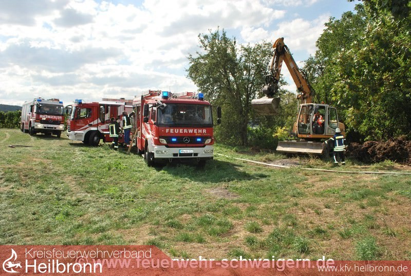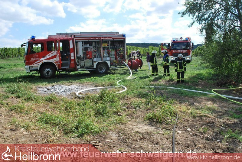 Da nicht abzusehen war, ob der Löschwasservorrat der beiden Schwaigerner Löschfahrzeuge für die Brandbekämpfung ausreichen würde und die Einsatzstelle zudem auf Markung Leingarten lag, wurde zusätzlich die Feuerwehr Leingarten mit ihrem Tanklöschfahrzeug angefordert.