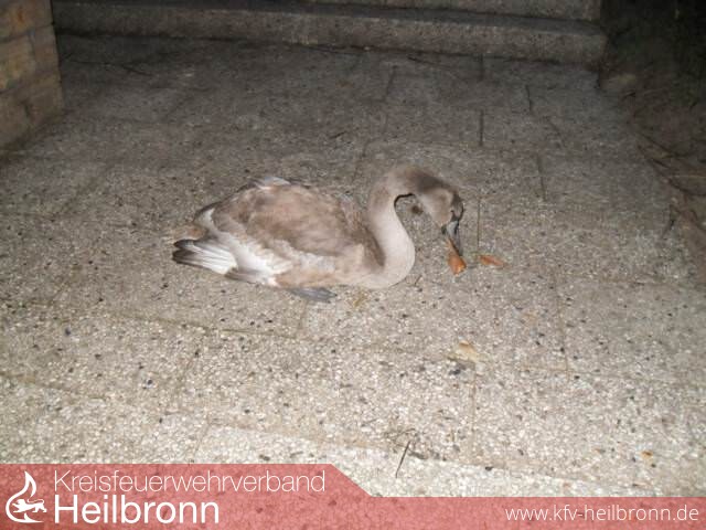 Die Leitstelle hat mit dem Stichwort Tiernotlage in der Lessingstraße die Meldempfänger für Kleineinsätze der Abteilung Bad Friedrichshall alarmiert. Ein junger Schwan hatte sich in die Straße des Wohngebietes verirrt.