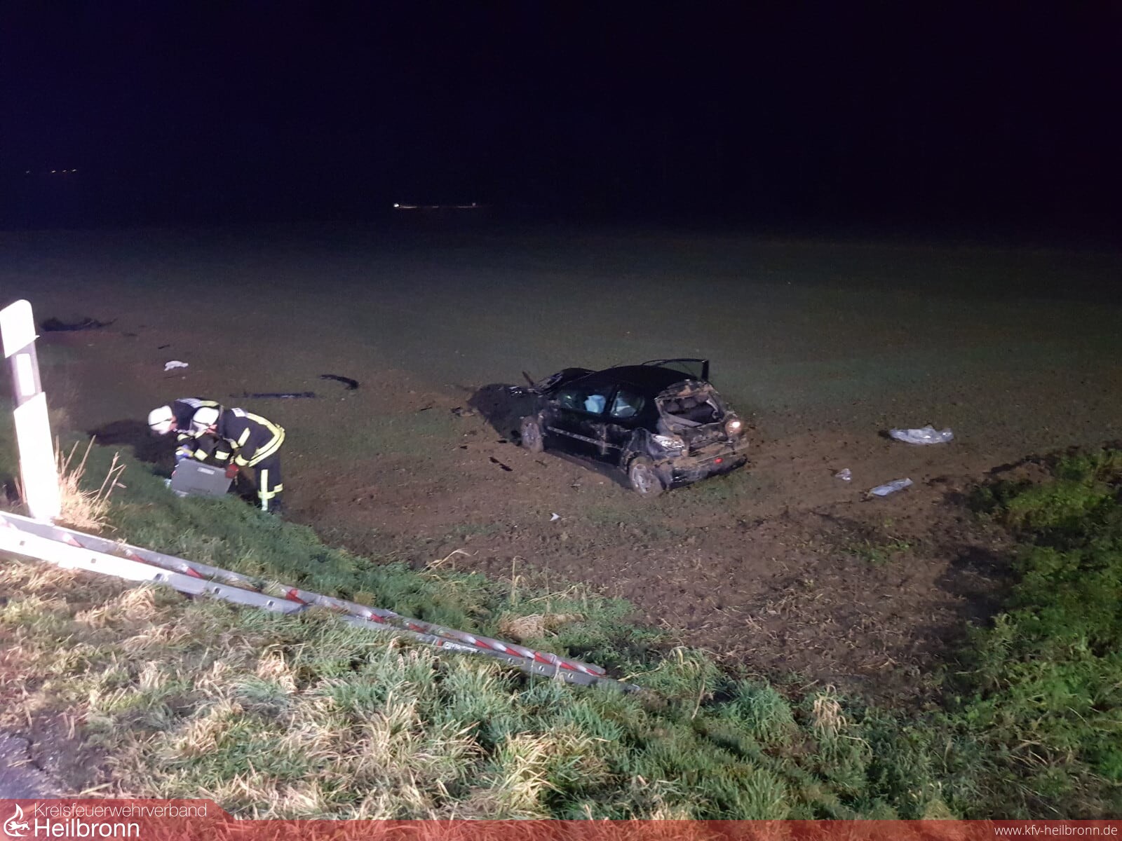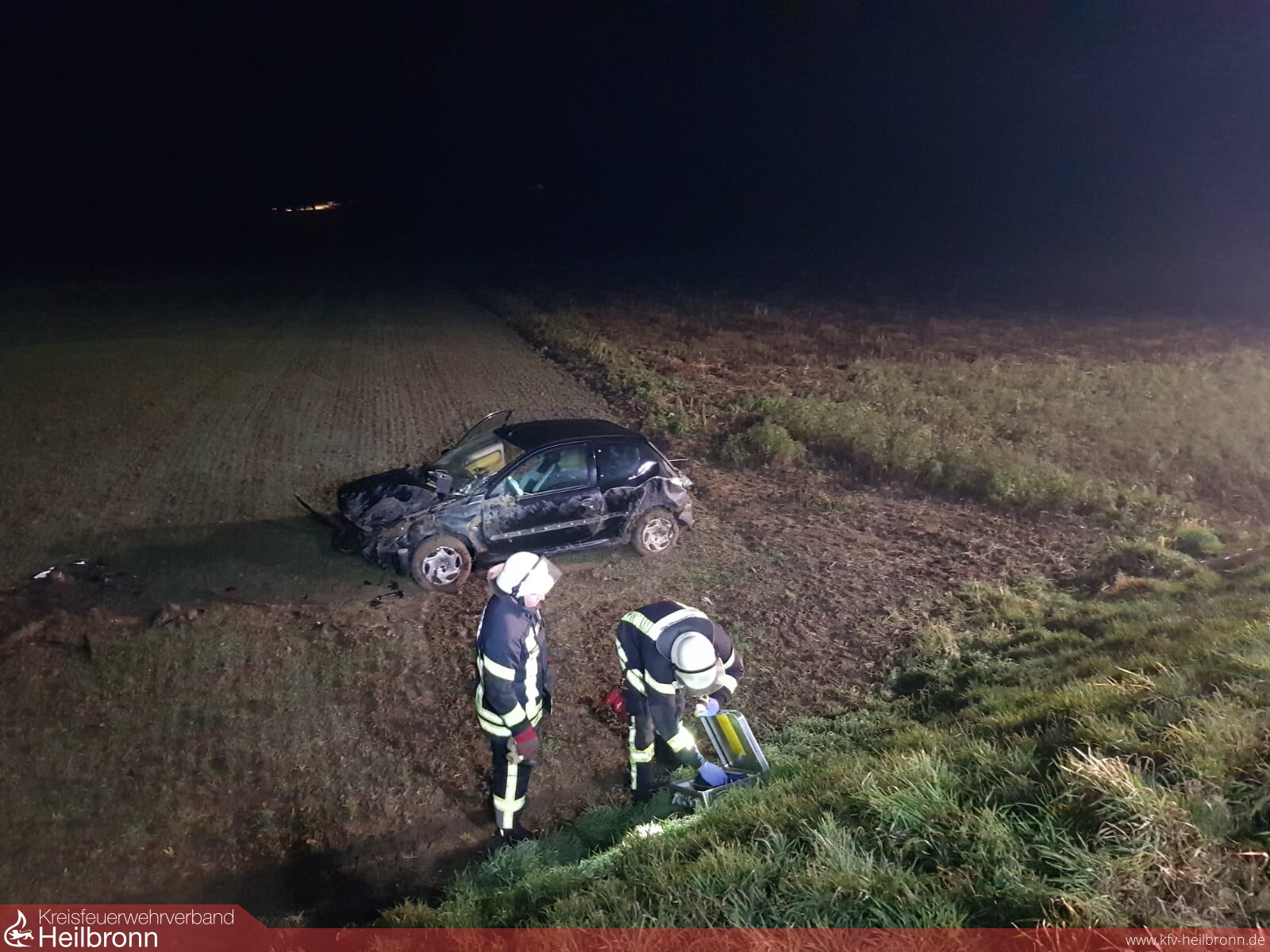 Die Feuerwehr Schwaigern war vom Rettungsdienst zu einem Verkehrsunfall nachalarmiert worden um zwei Verletzte über eine steile Böschung zu retten. Zwischen Stetten a.H. und Schwaigern war ein PKW von der Fahrbahn abgekommen und eine Böschung hinabgestürzt. Dabei hat sich das Fahrzeug mehrmals überschlagen.