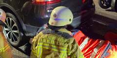 Am Samstag, 31. Januar geriet gegen 18 Uhr ein Rollerfahrer nach einem Sturz in der Sontheimer Straße unter ein Fahrzeug. Hierbei wurde er unter dem Heckbereich des Wagens eingeklemmt. Zur Befreiung des Mannes mussten die Einsatzkräfte das Auto sichern und anheben. Hierfür kamen hydraulische Rettungsgeräte sowie Unterbaumaterial zum Einsatz. Nach einer Erstversorgung vor Ort wurde der Verletzte in ein Krankenhaus eingeliefert.