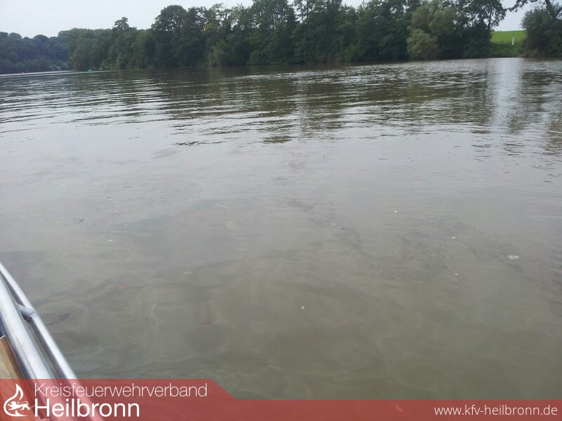 Sofort nach der Alarmierung rückte die Wehr dann zum Neckar aus, wo beide Boote ins Wasser gelassen wurden. Rein vorsorglich erfolgte hier noch eine Anforderung der Berufsfeuerwehr Heilbronn. An zwei Stellen auf dem Neckar konnte deutlich eine Verunreinigung festgestellt werden, welche sich im weiteren Verlauf der Maßnahmen als Rußpartikel herausstellten.