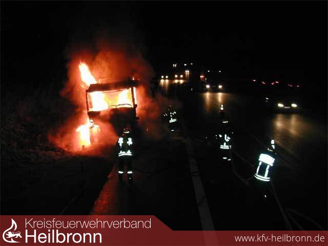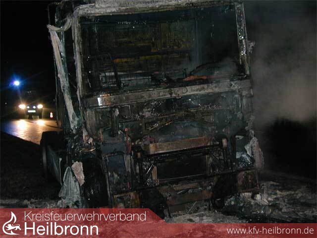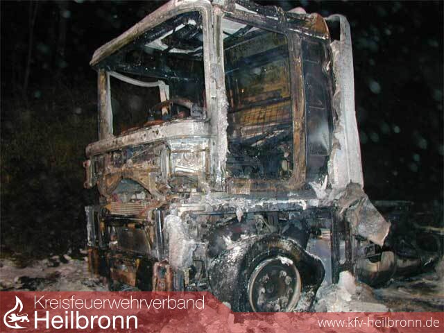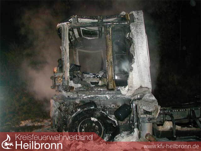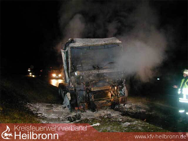 Am Montag, 13.11.2006 wurde die Feuerwehr Weinsberg um 23:43 Uhr zu einem LKW-Brand auf die Bundesautobahn A 81 Fahrtrichtung Stuttgart gerufen. Kurz vor der Ausfahrt Untergruppenbach brannte eine Sattelzugmaschine in voller Ausdehnung.