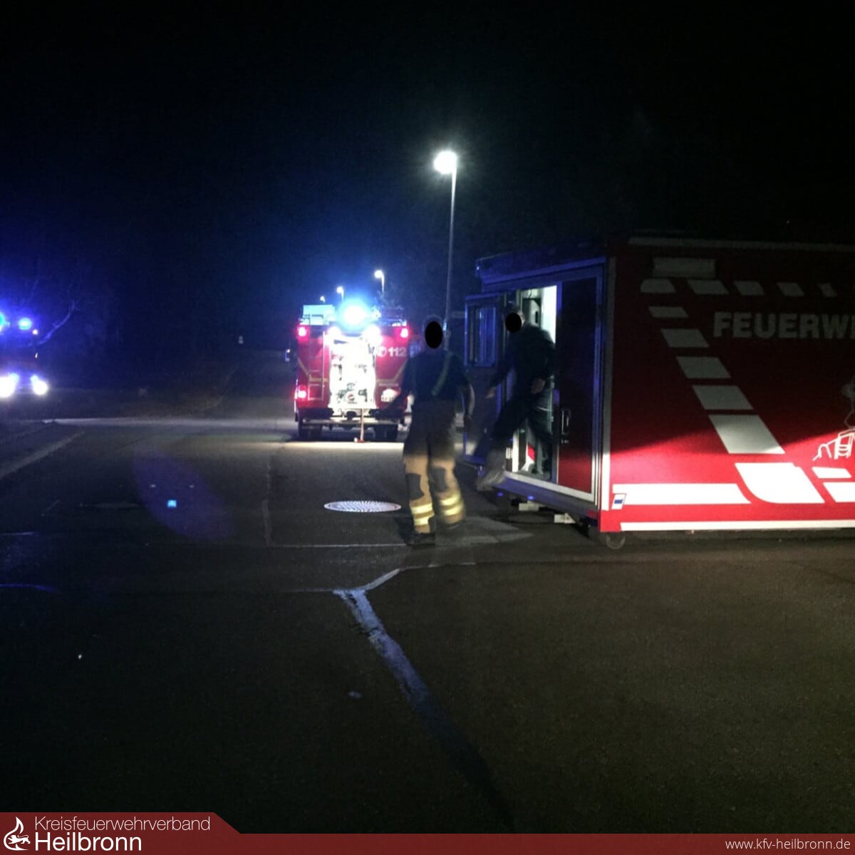Die Feuerwehr Heilbronn war mit einem WLF und dem AB-AS vor Ort um den Bedarf an Atemschutzgeräten zu decken und um die Fahrzeuge wieder bestücken zu können.