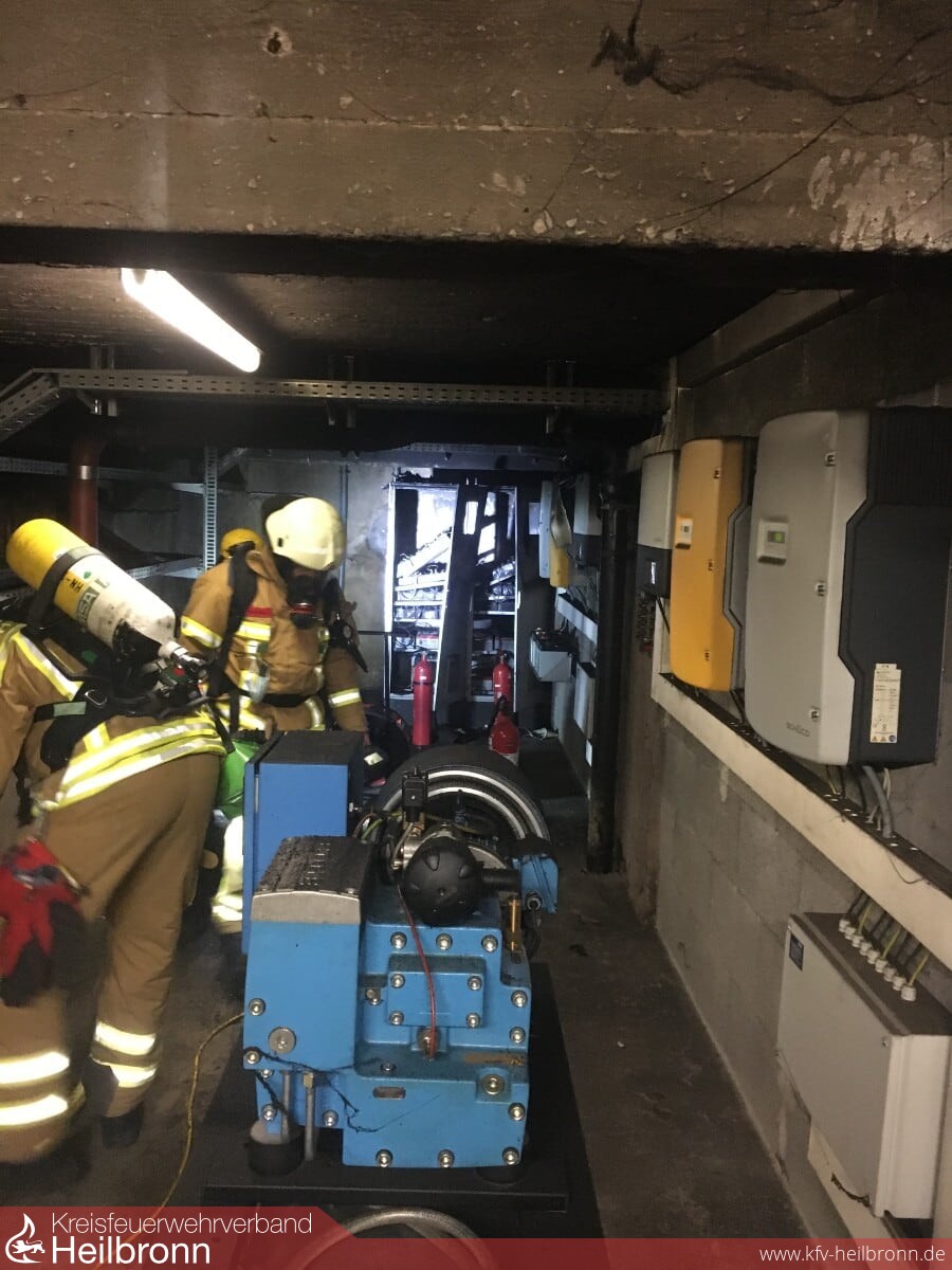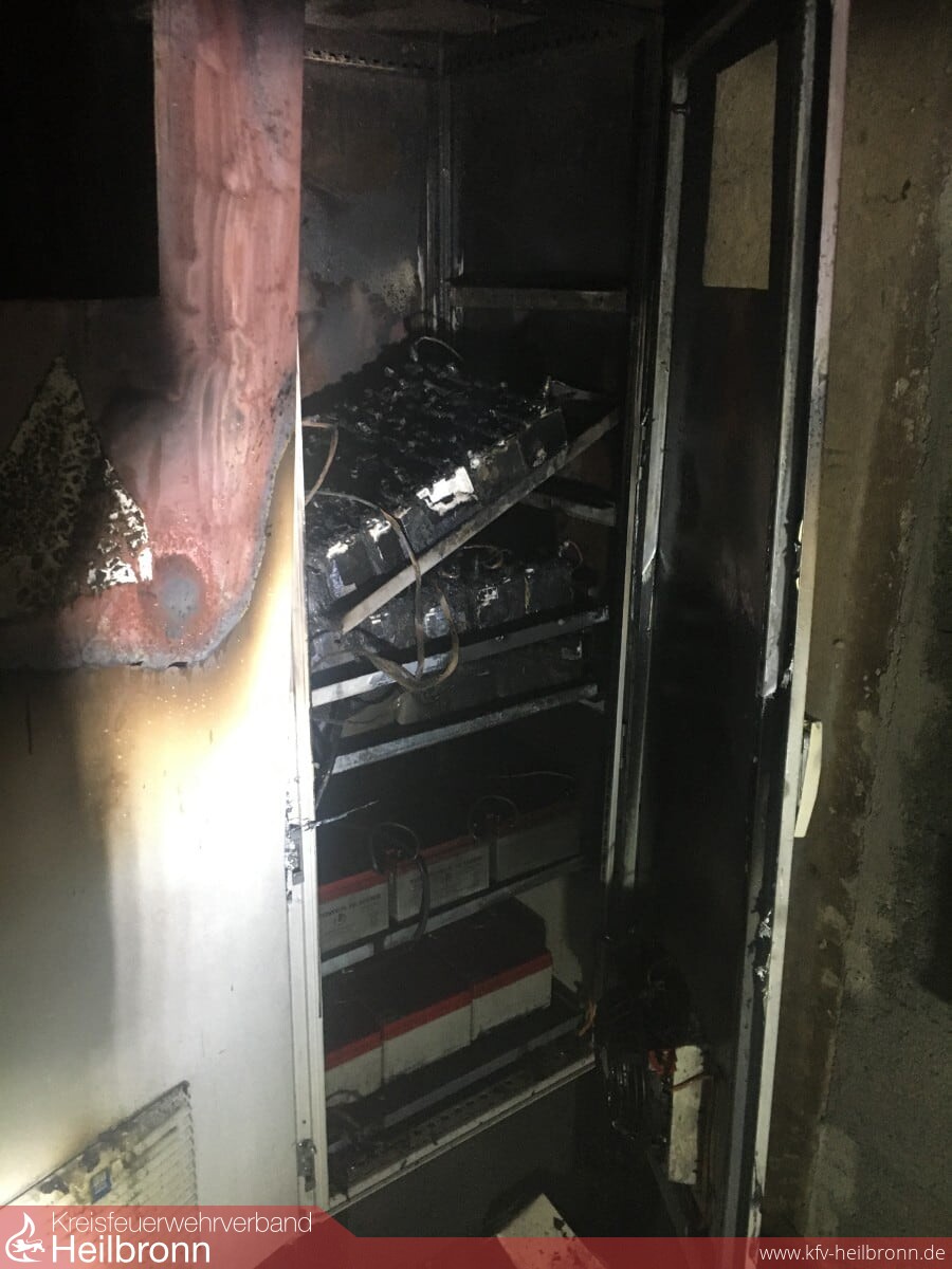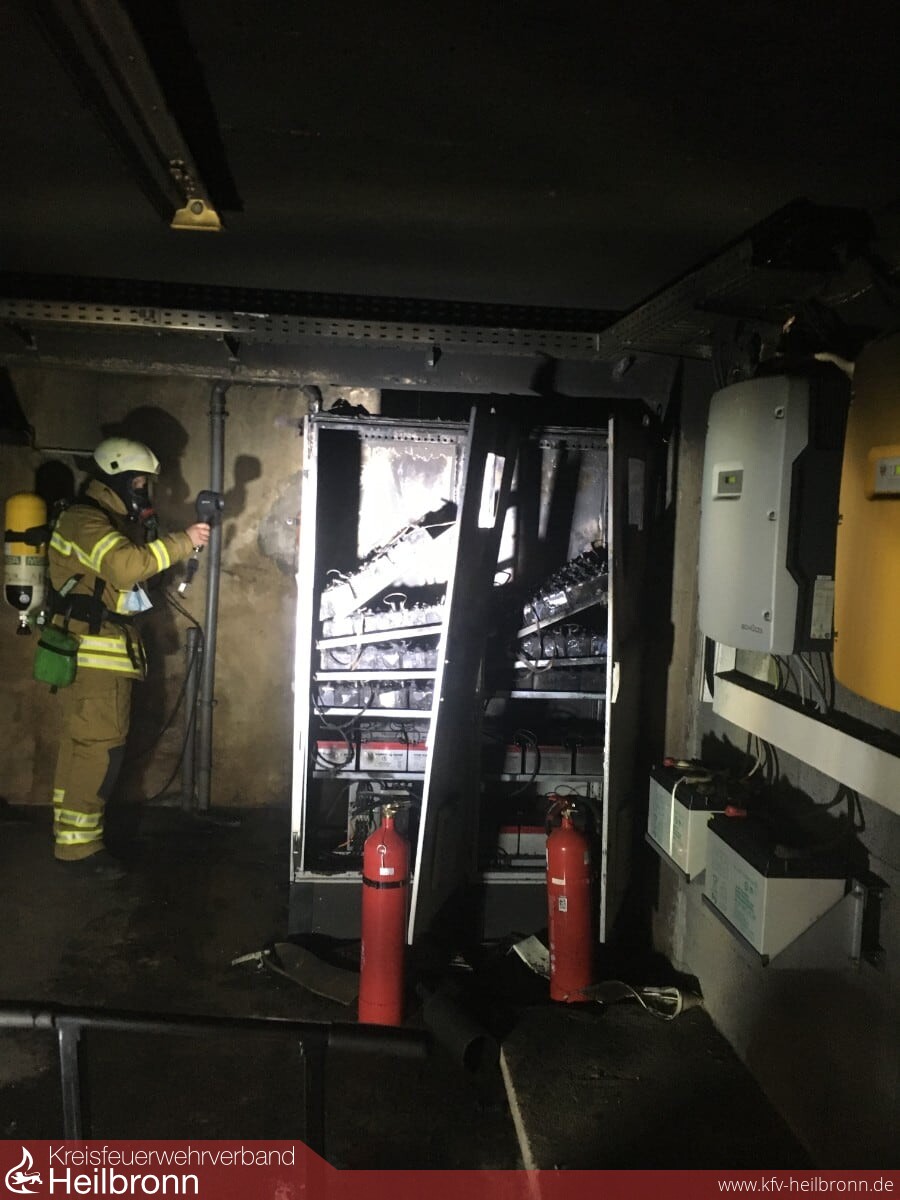 Die Berufsfeuerwehr sowie die Freiwillige Feuerwehr, Abteilung -Stadt-, rückten umgehend zur gemeldeten Adresse aus. Beim Eintreffen der ersten Kräfte vor Ort, war das erste Untergeschoss bereits verraucht. Die anwesenden Arbeiter konnten den Einsatzkräften die Gegebenheiten im Keller genau beschreiben. Hierbei wurden diese auch auf ein Batterielager zur Strompufferung hingewiesen. Ein Trupp unter Atemschutz konnte die Brandstelle in einem Schaltschrank schnell ausfindig machen und die Flammen löschen. Zur Brandbekämpfung kam ein 5 kg Kohlendioxid-Feuerlöscher zum Einsatz. Abschließend wurde der Brandrauch durch maschinelle Belüftung aus dem Kellergeschoss herausgedrückt.