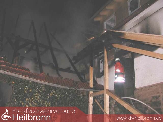 Beim Eintreffen der Wehr aus Pfaffenhofen mit Ihrer Abteilung aus Weiler stand bereits die Scheune im Vollbrand - das Feuer drohte auf benachbarte Gebäude überzugreifen. Nach Eintreffen alarmierte diese zur Verstärkung das TLF 16/25 aus Güglingen und die Drehleiter DLK 23/12 aus Brackenheim. Mehrere Trupps unter Atemschutz waren im Innen- und Außenangriff. Nebengebäude wurden durch Riegelstellung von drei Seiten abgeschirmt. Durch das schnelle Eingreifen der Feuerwehr konnte ein größerer Schaden vermieden werden.