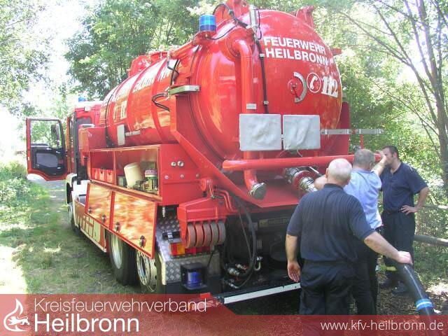 Mit neun Fahrzeugen, drei Abrollbehältern und zwei Booten waren die Berufsfeuerwehr wie auch die Freiwillige Feuerwehr Heilbronn-Stadt an der Einsatzstelle.
