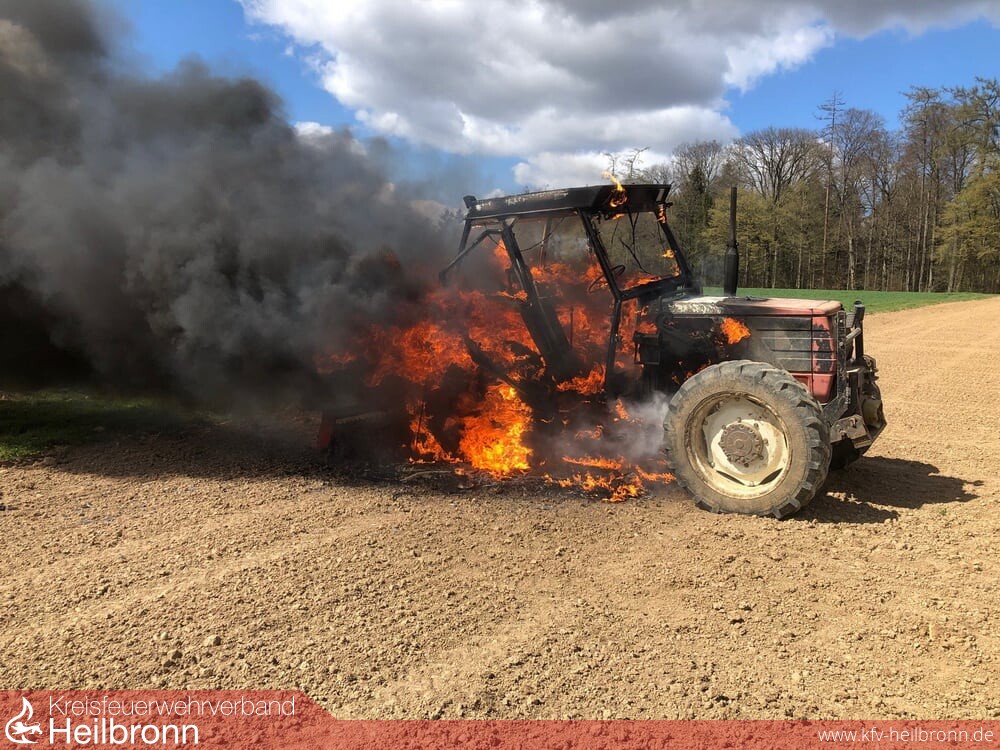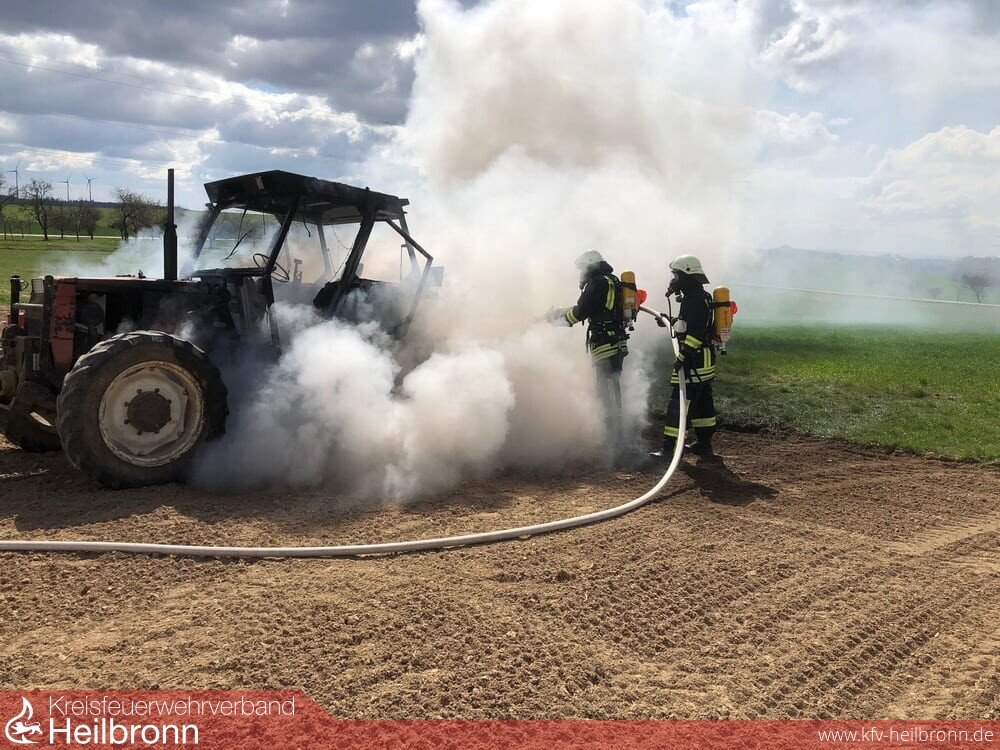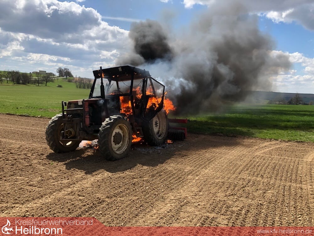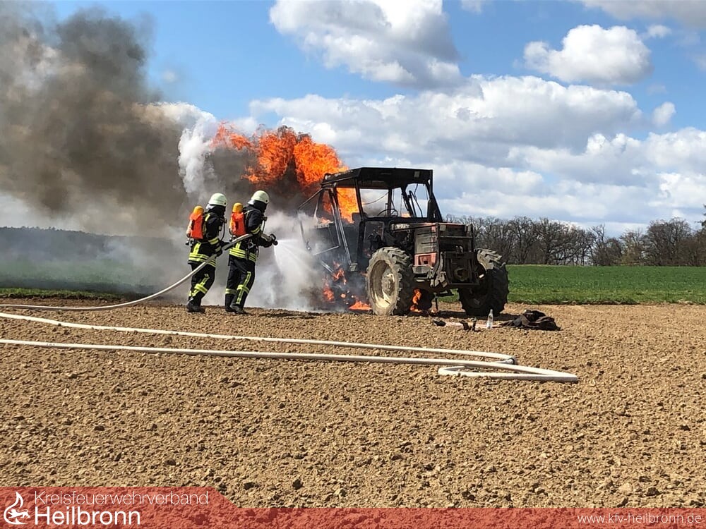 Zu einem Schlepper-Brand wurden die beiden Abteilungen aus Korb und Möckmühl an die K2023 gerufen. Vermutlich durch einen technischen Defekt geriet der Schlepper bei Arbeiten auf einem Acker in Brand. Die Einsatzkräfte löschten das Feuer ab.