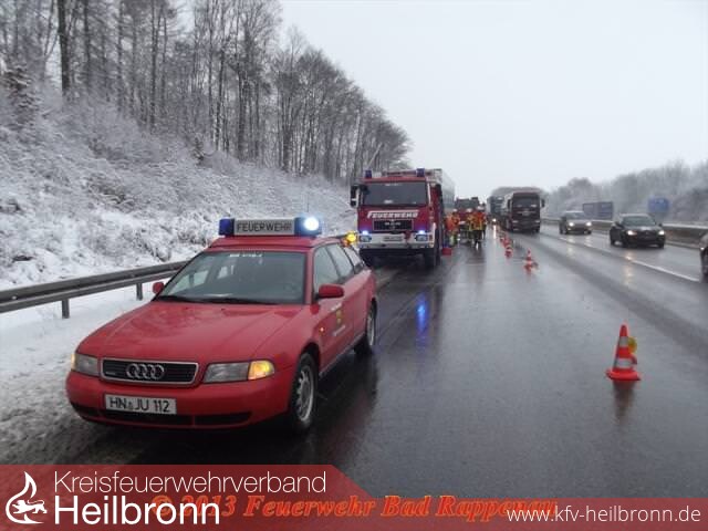 Zum zweiten Mal innerhalb 36 Stunden musste die Abteilung Bad Rappenau zu einem Einsatz mit auslaufendem Kraftstoff nach Verkehrsunfall auf die A6 ausrücken.