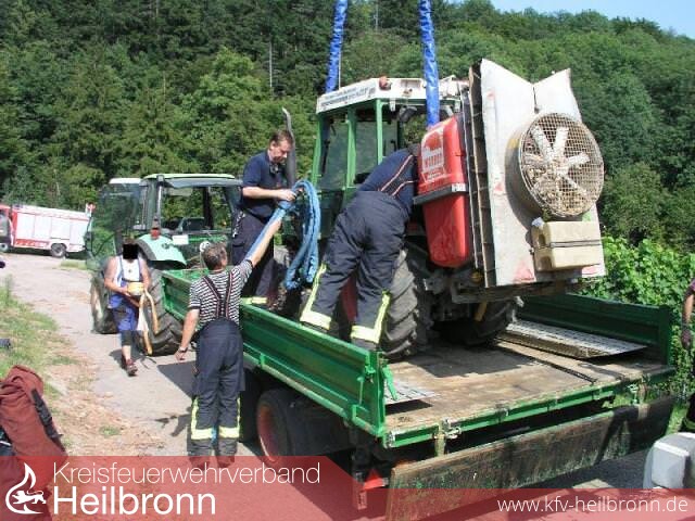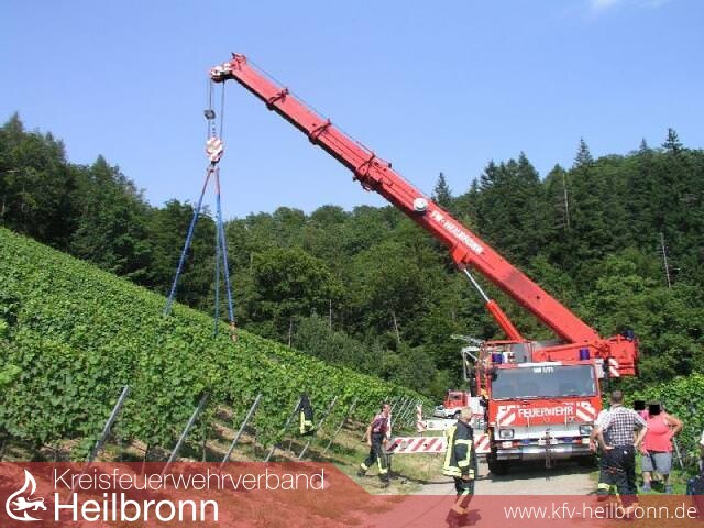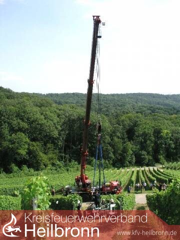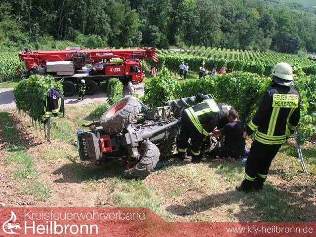 Gegen 14.27 Uhr forderte die Freiwillige Feuerwehr Flein die Berufsfeuerwehr mit dem Feuerwehrkran zur Unterstützung an. Im Fleiner Gewann Sonnenberg war ein Schmalspurschlepper bei Pflanzenschutzarbeiten am Steilhang umgestürzt.