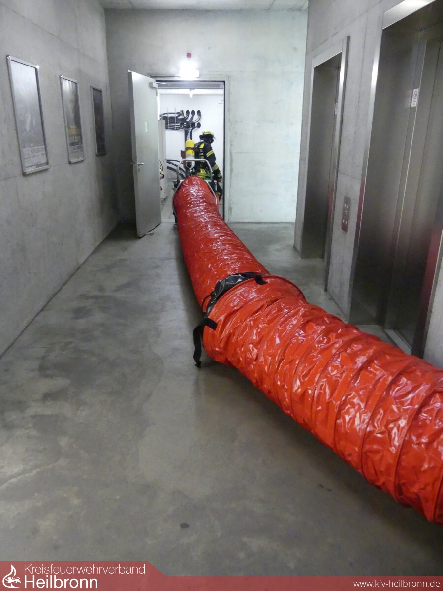 Zur Entrauchung der betroffenen Bereiche kam ein spezielles Be- und Entlüftungsgerät zum Einsatz.