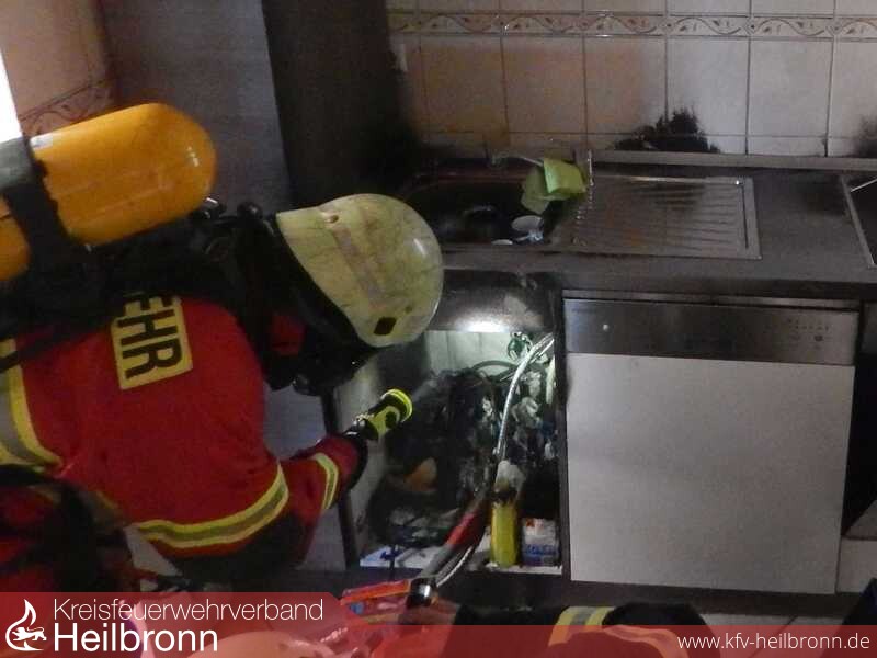 Bereits kurz nach dem Eintreffen konnten die Einsatzkräfte einen in Brand geratenen Wasserboiler unter der Spüle ausfindig machen. Das Feuer wurde rasch gelöscht und der defekte Boiler ausgebaut.