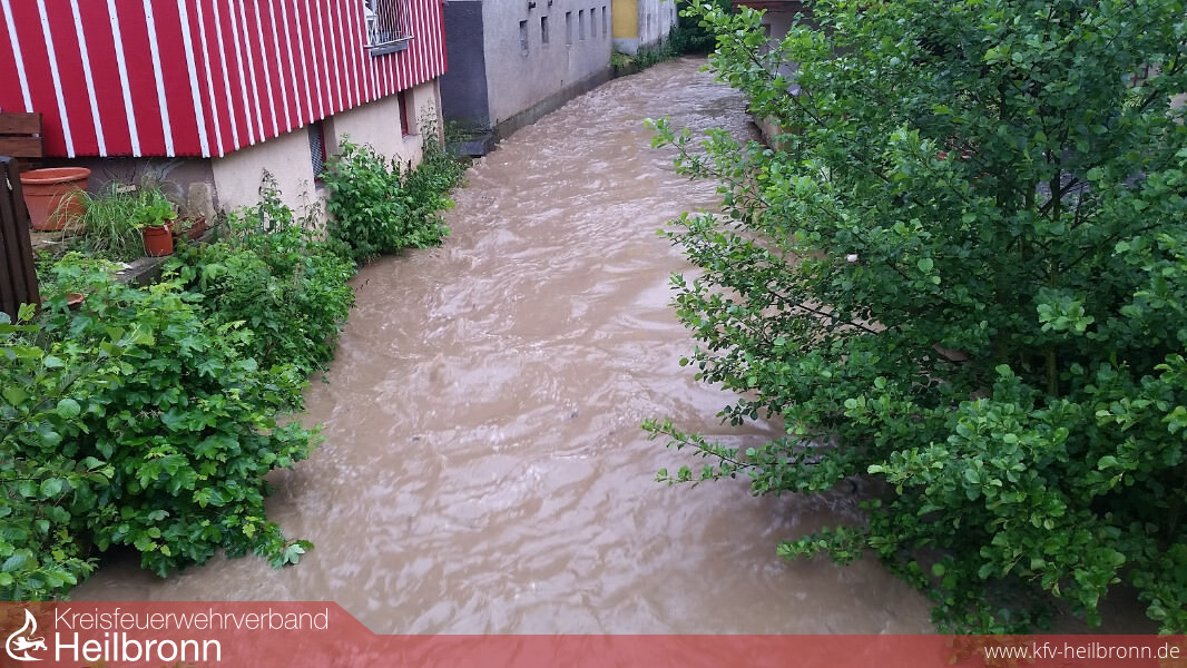 Da der Jagstpegel durch die starken Regenfälle erheblich angestiegen war, drohte eine Schreinerei unter Wasser zu laufen. Die Feuerwehr und das THW dichteten mit Hilfe von Sandsäcken alle Türen und Zugänge ab.