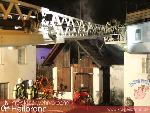Eine Anwohnerin im Wendelinweg meldete um 0.23 Uhr sowohl bei der Feuerwehr als auch bei der Polizei den Brand eines Gebäudes. Die Einsatzkräfte stellten kurz darauf fest, dass ein an ein Wohnhaus angrenzender aber dennoch freistehender Geräteschuppen brannte. Die drei Bewohner des Wohnhauses konnten selbständig das Gebäude verlassen. Durch das Feuer wurden die zum Schuppen hin befindliche Fassade bzw. Rolläden des Wohnhauses sowie ein neben dem Geräteschuppen abgestellter Getränkekühlwagen leicht in Mitleidenschaft gezogen. Personen wurden bei dem Brand nicht verletzt. Der Sachschaden wird auf ca. 20 000 Euro beziffert. Die Polizei hat die Ermittlungen zur Brandursache aufgenommen. Das DRK war mit vier Rettungssanitätern, die Feuerwehr mit 34 Mann und sechs Fahrzeugen am Brandort.