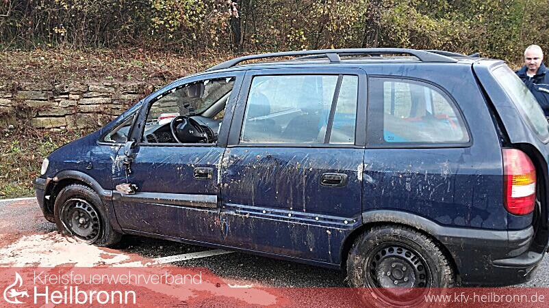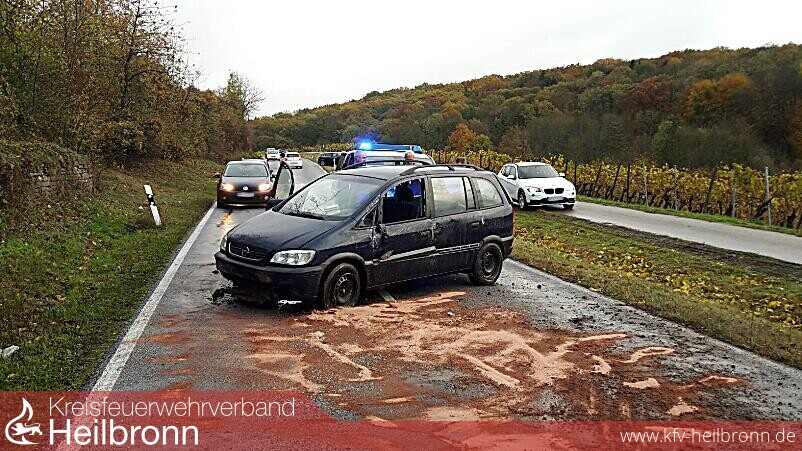 Der aus Talheim kommende Fahrer des Opel verlor in der Kurve nach dem Orts Ausgang in Richtung Untergruppenbach die Kontrolle über sein Fahrzeug. Daraufhin wurde er aus der Kurve getragen. Im Anschluss prallte er zweimal gegen eine Weinbergmauer, und blieb letztendlich auf der Fahrerseite liegen. Der Fahrer konnte sich selbständig aus seinem Fahrzeug befreien. Die eintreffenden Kameraden der Feuerwehr Talheim haben den Verletzten dem Rettungsdienst übergeben, und die auslaufen Flüssigkeiten aufgenommen.