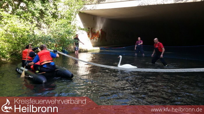 Die Taktik musste umgestellt werden, was aber kein großes Problem darstellte. Der Eingang zum Seckach-Durchlass unter der Umgehungsstraße wurde mit Netzen verschlossen, zwei Schlauchboote der Feuerwehr benutzten ebenso ein Netz welches von Boot zu Boot gespannt wurde um damit in Richtung Schwan zu rudern.