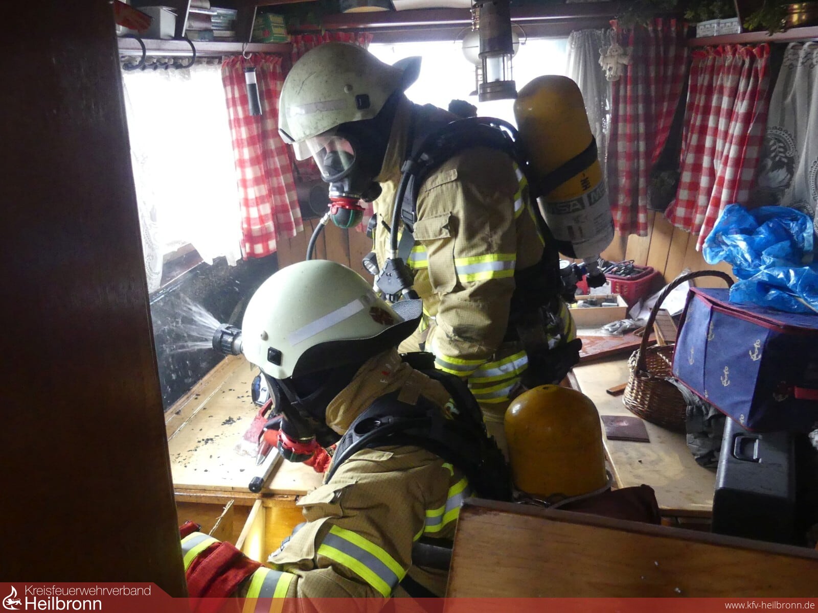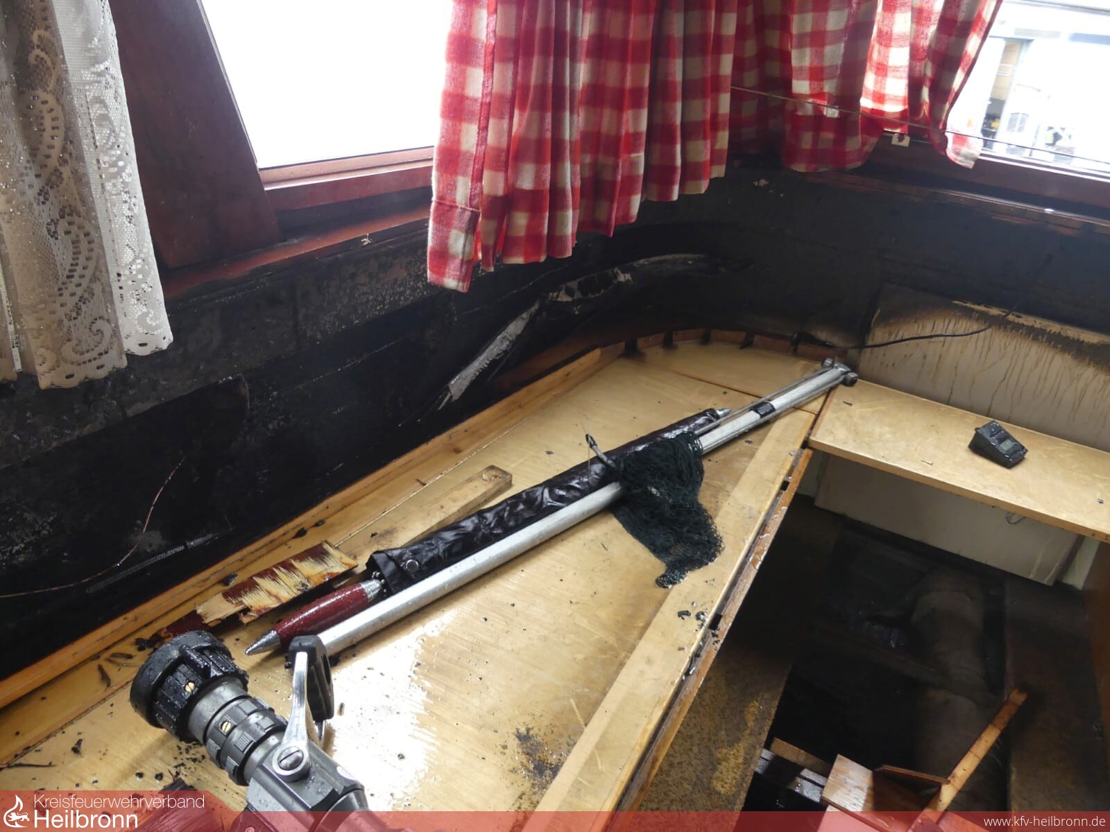Der vorgehende Atemschutztrupp entfernte Teile der Innenverkleidung und konnte so eine gezielte Brandbekämpfung durchführen.