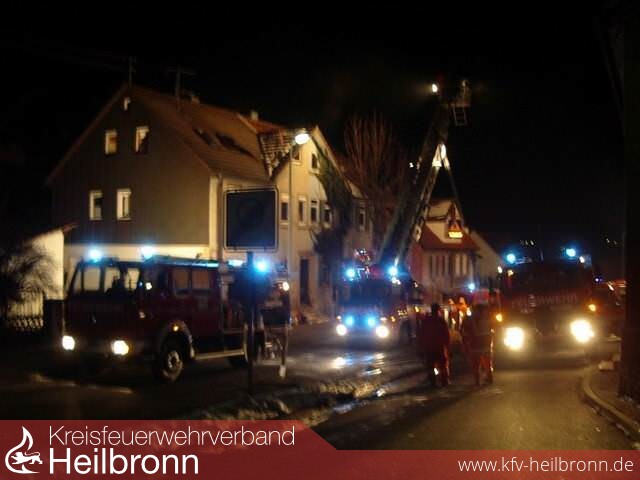 Als die Bewohner des 1. Obergeschosses, zwei Erwachsene und ein kleines Kind, kurz nach drei Uhr das Feuer bemerkten, war durch die starke Rauchentwicklung das Treppenhaus nicht mehr begehbar. Die um 3.25 Uhr alarmierte Möckmühler Feuerwehr war innerhalb kürzester Zeit mit sechs Fahrzeugen und 30 Mann vor Ort.