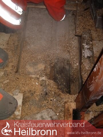 Die Feuerwehr löschte mit 2 C-Rohren unter Einsatz von Atemschutz das Feuer. Der Estrich musste geöffnet, Isoliermaterial entfernt und mit der Motorsäge Wand- und Deckenbalken herausgesägt werden, um die vorhandenen Glutnester abzulöschen.