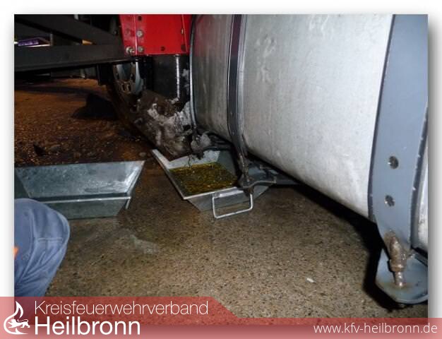 Durch das Abknicken wurde der Tank erheblich beschädigt, wodurch größere Mengen Diesel austraten.