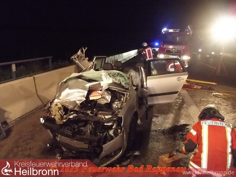 Während der Rettungs- und Bergungsarbeiten war die Autobahn ab der Anschlußstelle Bad Rappenau voll gesperrt.