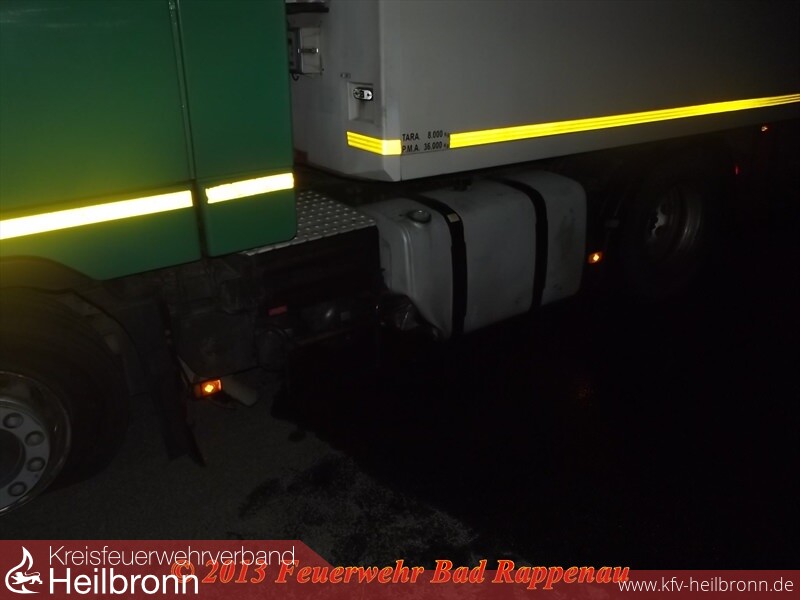 Um 01:31 Uhr wurde die Abteilung Bad Rappenau mit dem Einsatzstichwort "auslaufender Kraftstoff" auf die A6 in Fahrtrichtung Mann gerufen.