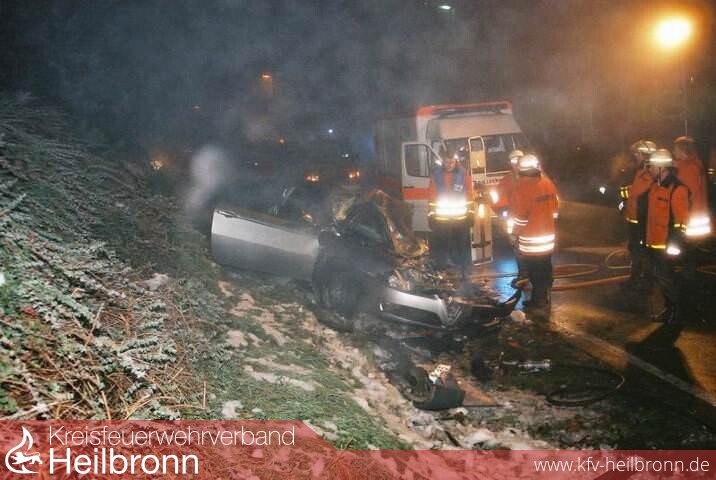 und Neckarsulm mussten den PKW strecken, um den Schwerstverletzten aus dem