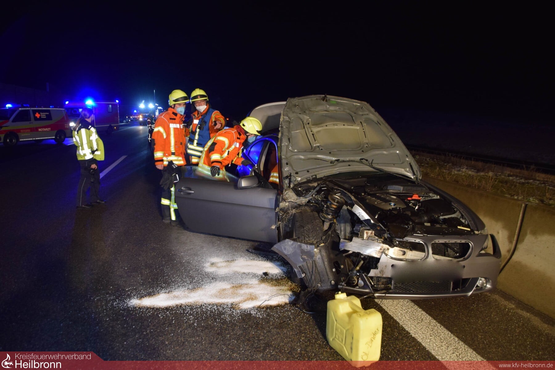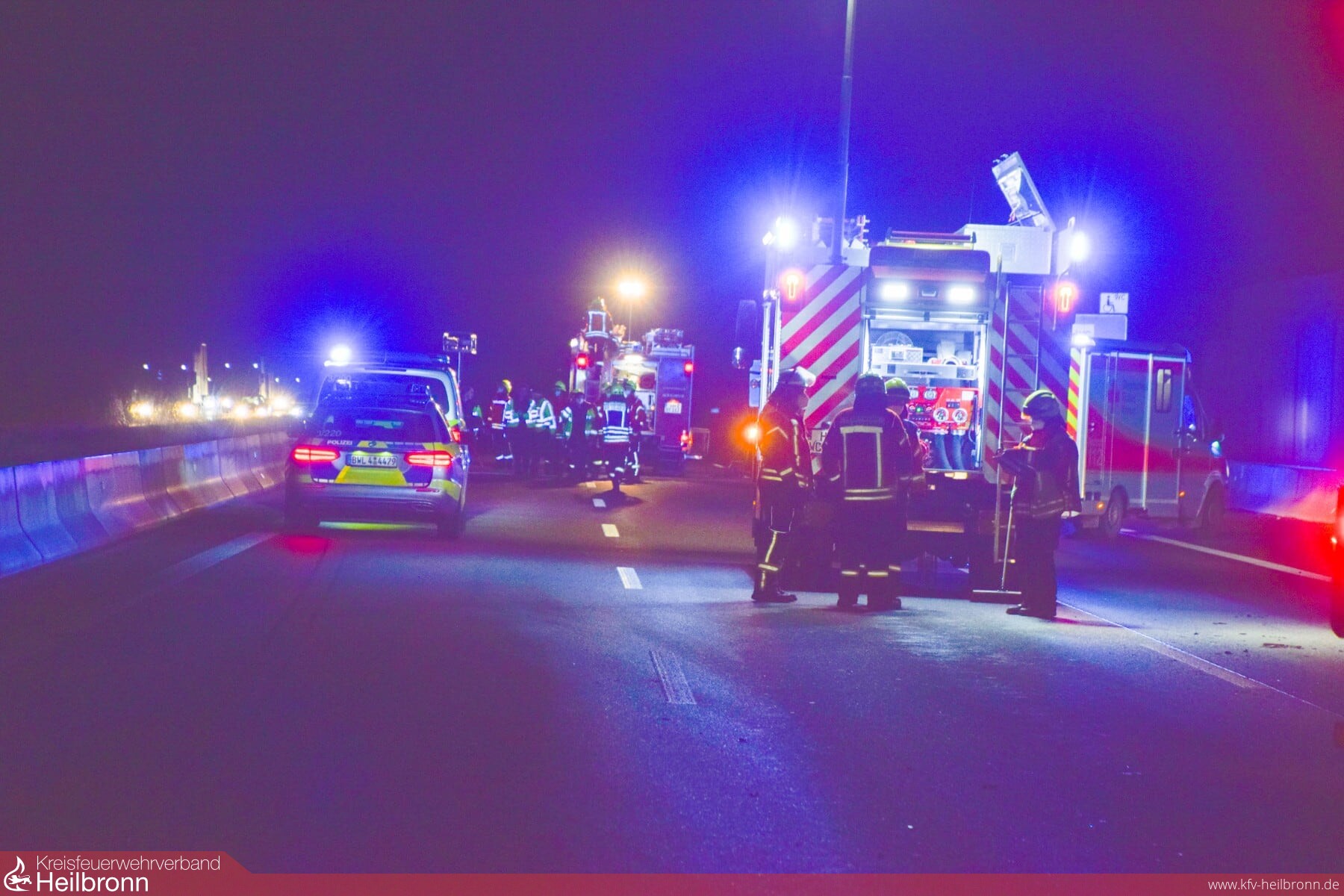 Durch das Unfallgeschehen musste die A6 für die Dauer bis kurz nach 22.00 Uhr voll gesperrt werden, danach konnte der rechte Fahrstreifen wieder freigegeben werden. Die Feuerwehr Bad Rappenau war insgesamt mit 5 Fahrzeugen und 21 Einsatzkräften vor Ort.
