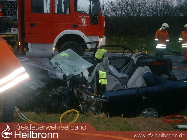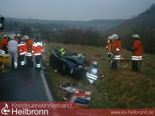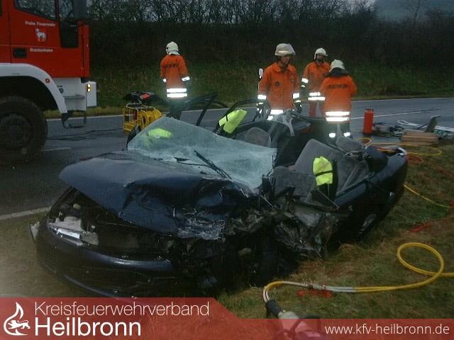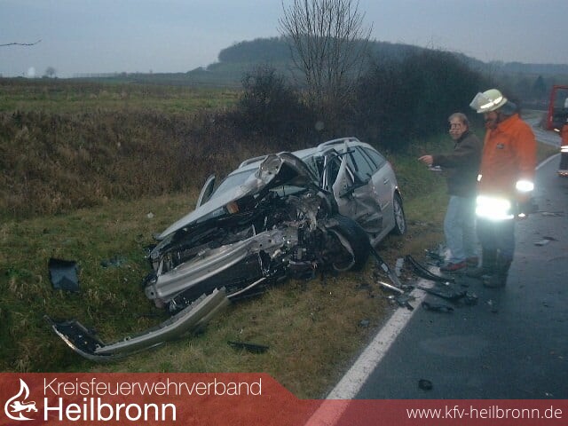 Der Fahrer eines Mitsubishis war gegen 08.15 Uhr in Richtung Dürrenzimmern unterwegs, als er in einer lang gezogenen Rechtskurve auf die Gegenfahrbahn geriet. Dort prallte er frontal gegen die Seite eines entgegen kommenden Renault Lagunas, der von einem 67-Jährigen gelenkt wurde. Die beiden Fahrzeuge wurden jeweils nach rechts abgewiesen und landeten abseits der Fahrbahn im Graben. Der 33-Jährige wurde so schwer verletzt, dass er später im Krankenhaus verstarb. Der Renault-Fahrer wurde in seinem Fahrzeug eingeklemmt und musste von der Feuerwehr befreit werden.