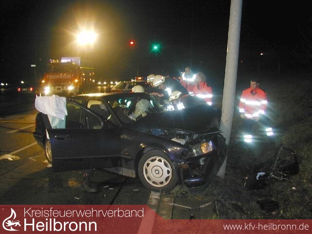 Am Samstag früh kam es auf der Neckartalstraße zu einem schweren Verkehrsunfall zwischen zwei Pkw`s. Der Fahrer eines BMW wollte von der Neue Straße auf die Neckartalstraße einbiegen. Die Ampelanlage war zum Zeitpunkt nicht in Betrieb. Beim Einfahren auf die Neckartalstraße übersah der junge Mann einen Mitsubishi, welcher sich aus Fahrtrichtung Heilbronn dem Kreuzungsbereich näherte. Der Mitsubishi rammte den BMW und schob ihn auf einen Laternenmasten. Hierbei wurde der Fahrer des BMW im Fußbereich eingeklemmt.