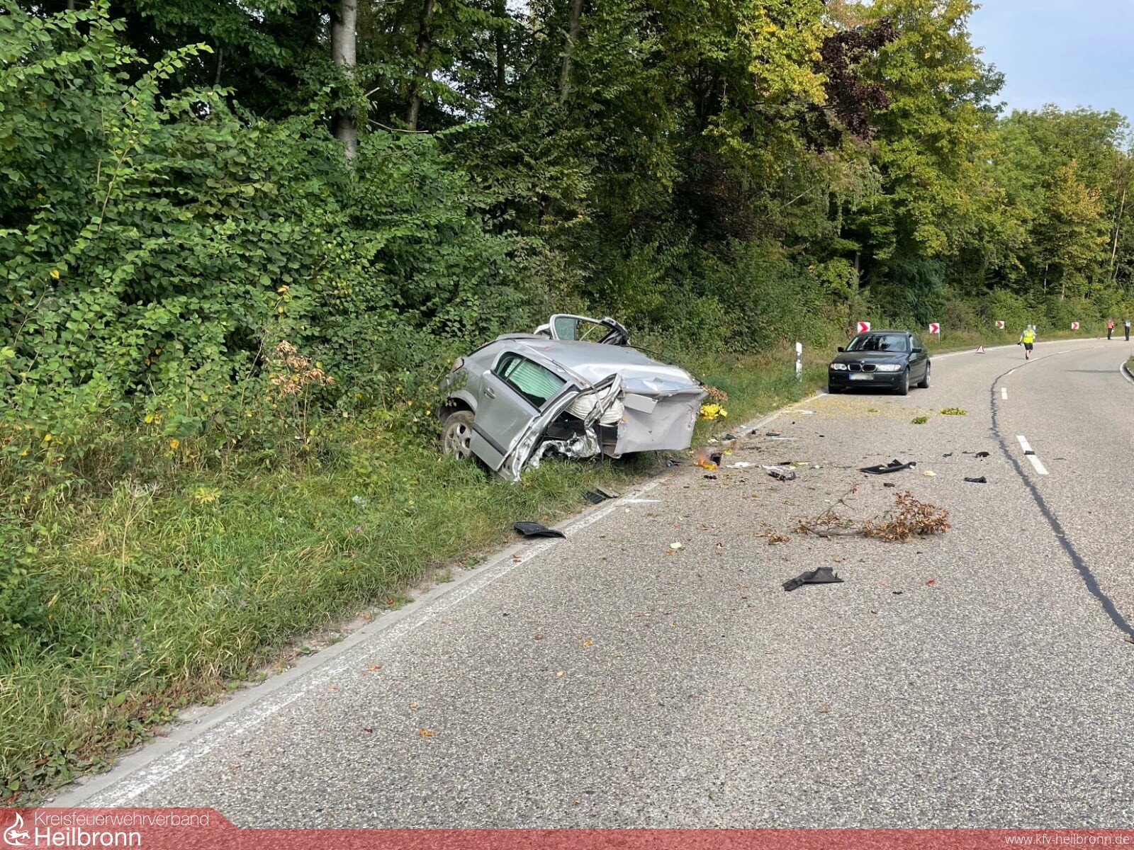 Ein silberfarbener Opel, welcher Richtung Lauffen unterwegs war, kam nach einem Überholmanöver alleinbeteiligt von der Fahrbahn ab. Dabei kollidierte er mit einem Baum, woraufhin der PKW massiv beschädigt wurde. Beim Eintreffen der Rettungskräfte konnte sich der Fahrer bereits selbstständig aus dem Wrack befreien und wurde umgehend rettungsdienstlich versorgt. Für den Beifahrer kam jede Hilfe zu spät. Die ersteintreffenden Rettungsmittel konnten nur noch den Tod des Beifahrers feststellen.
