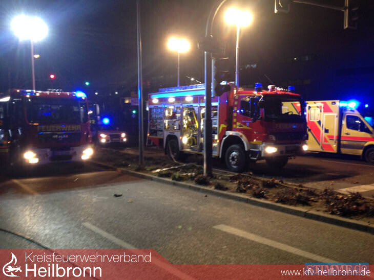 Gegen 22:10 Uhr wurde die Feuerwehr Neckarsulm zu einem schweren Verkehrsunfall mit eingeklemmter Person alarmiert. Auf der Gottlieb-Daimler-Straße kurz nach dem AUDI Forum war ein PKW Marke BMW aus unbekannter Ursache mit einem entgegenkommenden Kleinbus zusammengestoßen. Beim Eintreffen der Einsatzkräfte waren keine Person eingeklemmt, jedoch schwer verletzt. Die Feuerwehr übernahm sofort die Absicherung der Einsatzstelle und begann mit der Erstversorgung der verletzten Personen.