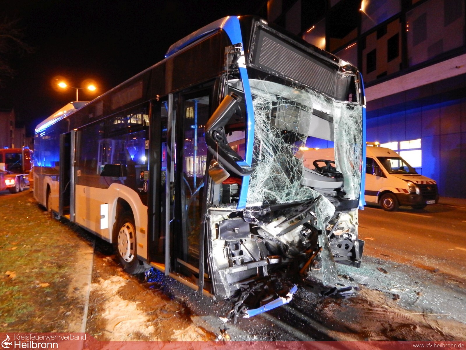 Der Fahrer eines Linienbusses verlor vermutlich aufgrund gesundheitlicher Probleme die Kontrolle über sein Fahrzeug. Nachdem er einen an der Ampel wartenden Pkw gerammt hatte geriet er auf den Grünstreifen zwischen den Fahrbahnen. Dort fuhr er einen massiven Baum um und prallte gegen zwei weitere Fahrzeuge auf der Gegenfahrbahn.