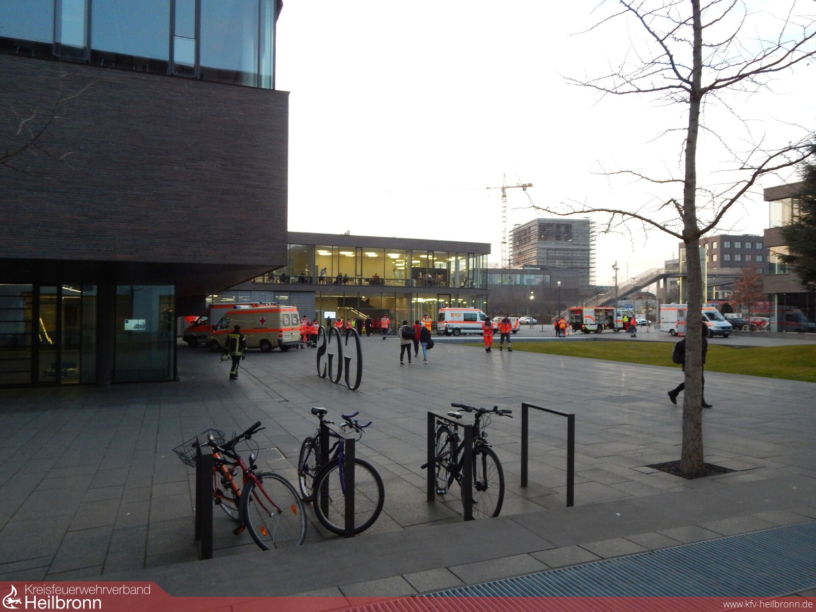 Sämtliche verfügbaren Rettungssanitäter der Feuerwehr unterstützten den Rettungsdienst in der benachbarten Hochschulmensa, welche als Verletztensammelstelle diente.