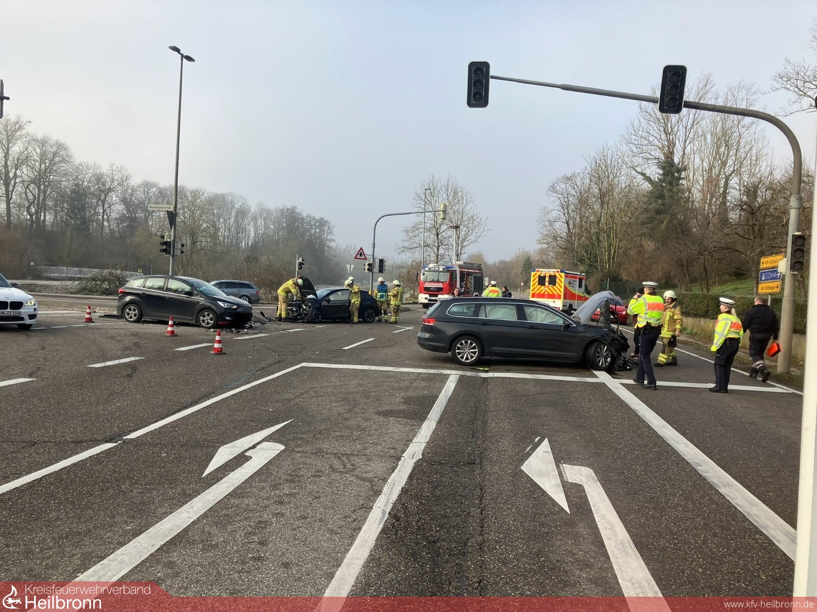 Heute kurz vor 13 Uhr musste die Feuerwehr Heilbronn zu einem Verkehrsunfall ins Industriegebiet „Böllinger Höfe“ ausrücken. Dort waren zwei Fahrzeuge frontal zusammengestoßen. Eine 65-jährige Frau zog sich hierbei schwere Verletzungen zu.
