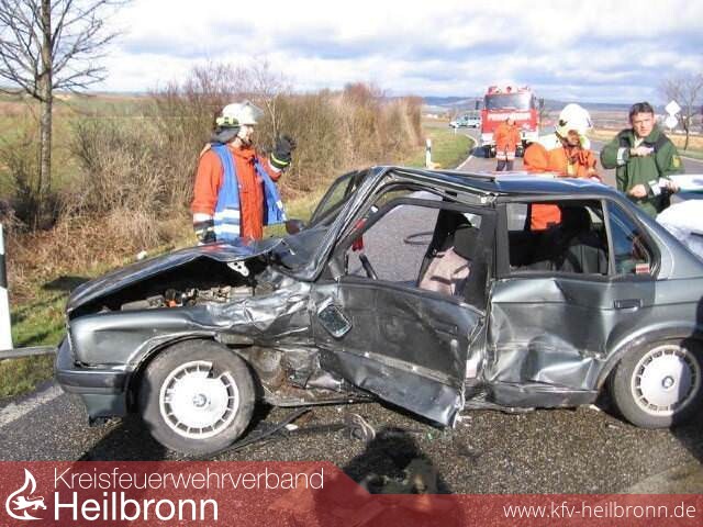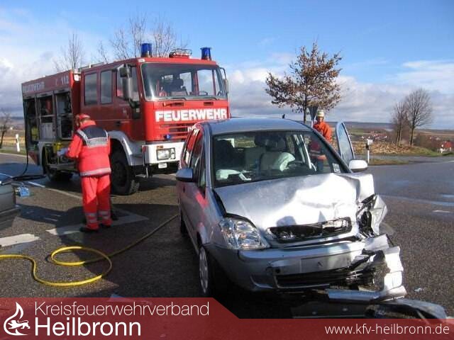 Lage: Zwischen Botenheim und Bönnigheim kam es an der Abzweigung nach Meimsheim zu einem schwerern Verkehrsunfall zwischen 2 PKWs. Durch den Zusammenprall wurde die Fahrzeugführerin des einen PKW in ihrem Fahrzeug eingeklemmt. Der zweite PKW-Lenker wurde leicht verletzt.