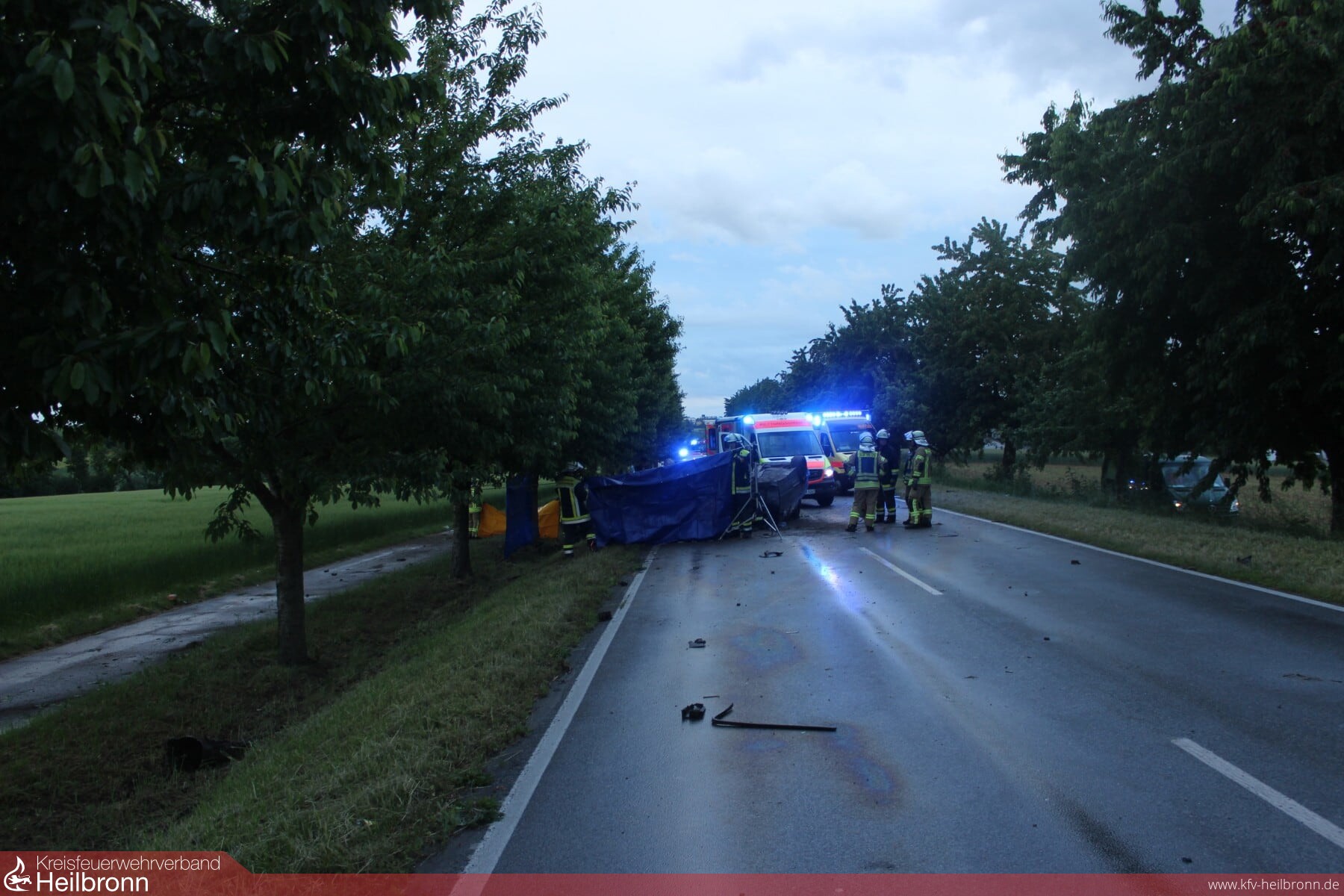 Die Landstraße war während der Rettungs-, Unfallaufnahme- und Aufräumarbeiten mehrere Stunden gesperrt.