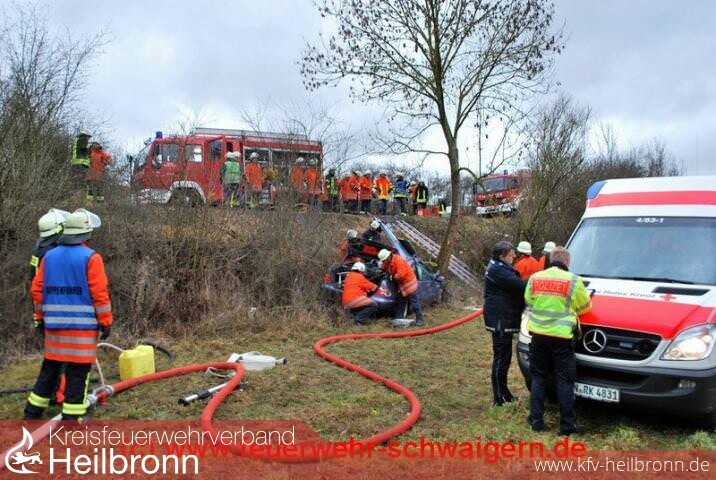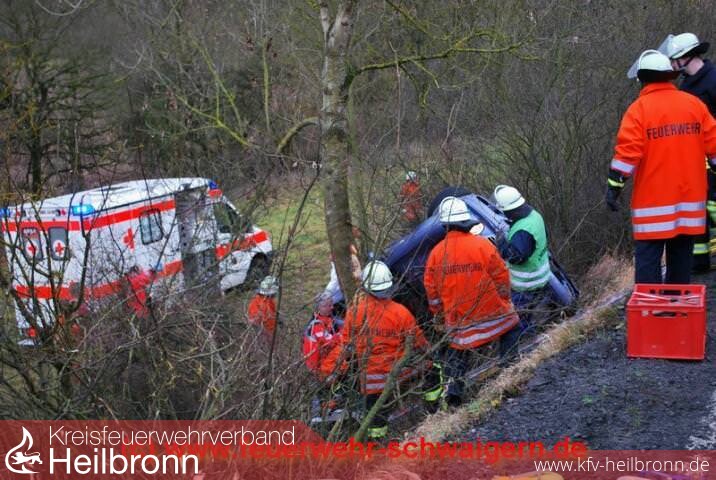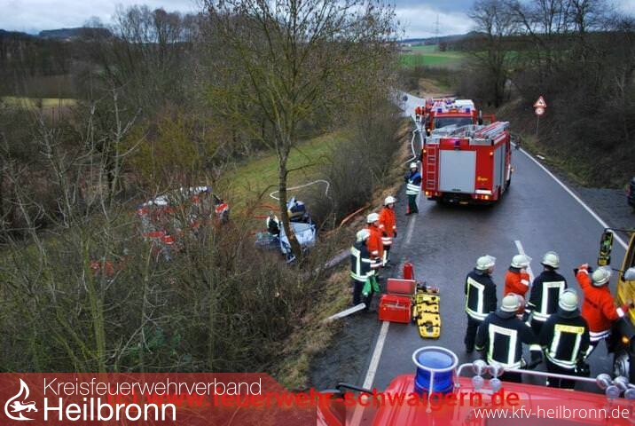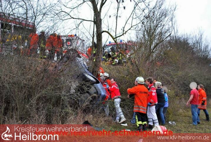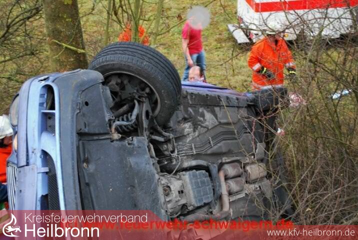 Beim Eintreffen der Rettungskräfte lag das Fahrzeug auf der Beifahrerseite mit dem Dach gegen den Baum. Im Bereich des Fahrersitzes war das Dach massiv eingedrückt. Ein im Fahrzeug befindliches Kleinkind konnte ohne Aufwand befreit und versorgt werden. Nach ersten Erkenntnissen war es nahzu unverletzt geblieben. Es wurde jedoch sicherheitshalber zu weitergehenden Untersuchungen mit einem Rettungswagen in die Heilbronner Kinderklinik gebracht.