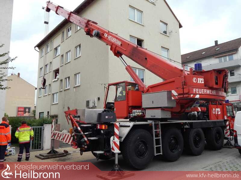 Deshalb wurden der Feuerwehrkran der Berufsfeuerwehr Heilbronn sowie der Großraum-Rettungstransportwagen (GRTW) der Berufsfeuerwehr Stuttgart zur Menschenrettung angefordert.
