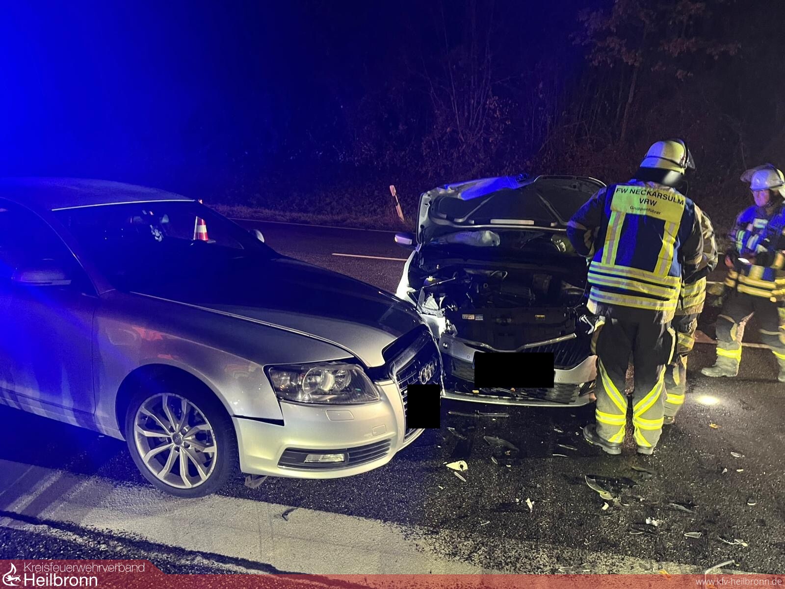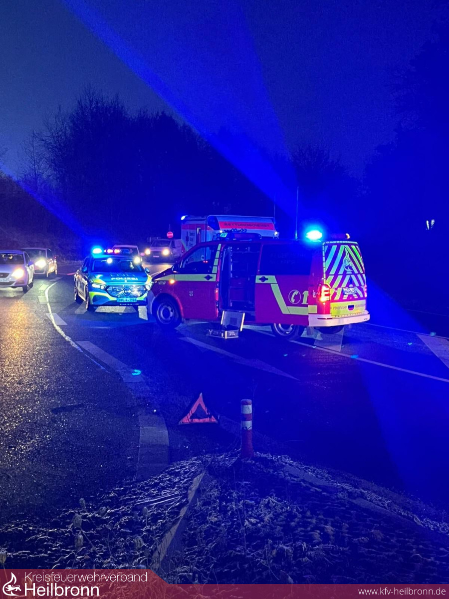 Die Feuerwehr Neckarsulm wurde in den Morgenstunden zu einem ausgelösten eCall auf die B 27 in den Bereich des Kreuzungsbauwerks Süd alarmiert. Nach einem Verkehrsunfall zwischen zwei Pkw befanden sich alle Beteiligten beim Eintreffen der Feuerwehr bereits außerhalb der Fahrzeuge und wurden durch den Rettungsdienst versorgt. Aufgrund erheblicher Straßenglätte wurde der Notdienst des Bauhofes nachgefordert, die Unfallstelle abgesichert und die Einsatzstelle ausgeleuchtet. Zusätzlich wurden die Fahrzeugbatterien abgeklemmt und auslaufende Betriebsmittel gebunden.