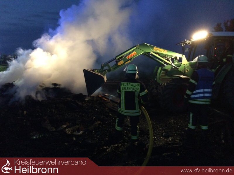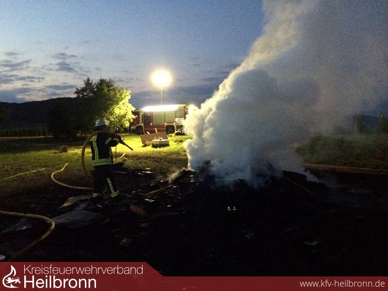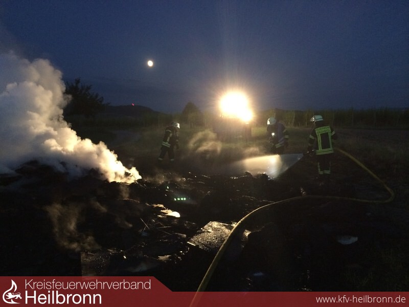Trotz des schnellen Eingreifens der Feuerwehr, konnte ein komplettes Abbrennen nicht verhindert werden. Der Holzstapel konnte erst in den Morgenstunden mit massivem Wassereinsatz komplett abgelöscht werden. Zur Unterstützung wurde ein Frontlader, von einem Mitglied der Feuerwehr, eingesetzt. Da sich der Hochbehälter in den Weinbergen befindet, wurde die Wasserversorgung durch Pendelverkehr zum nächsten Hydranten im Schießmauerweg sichergestellt.