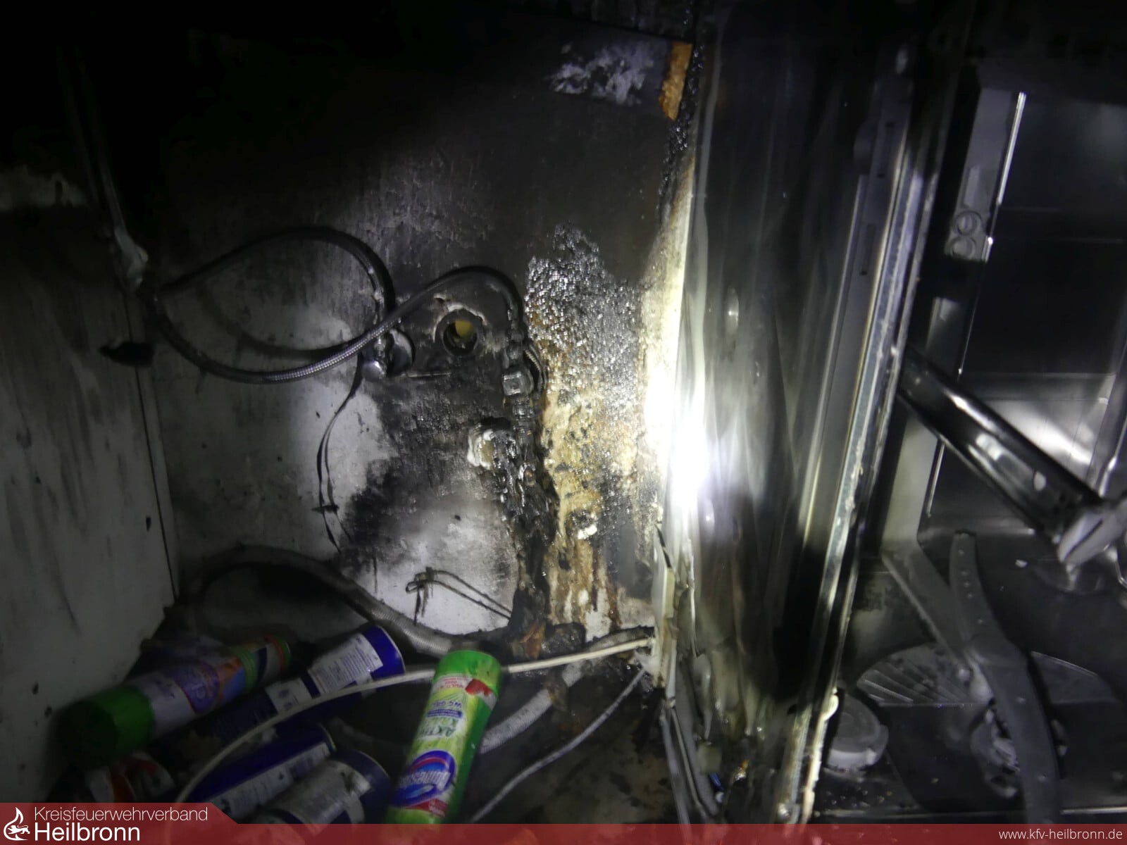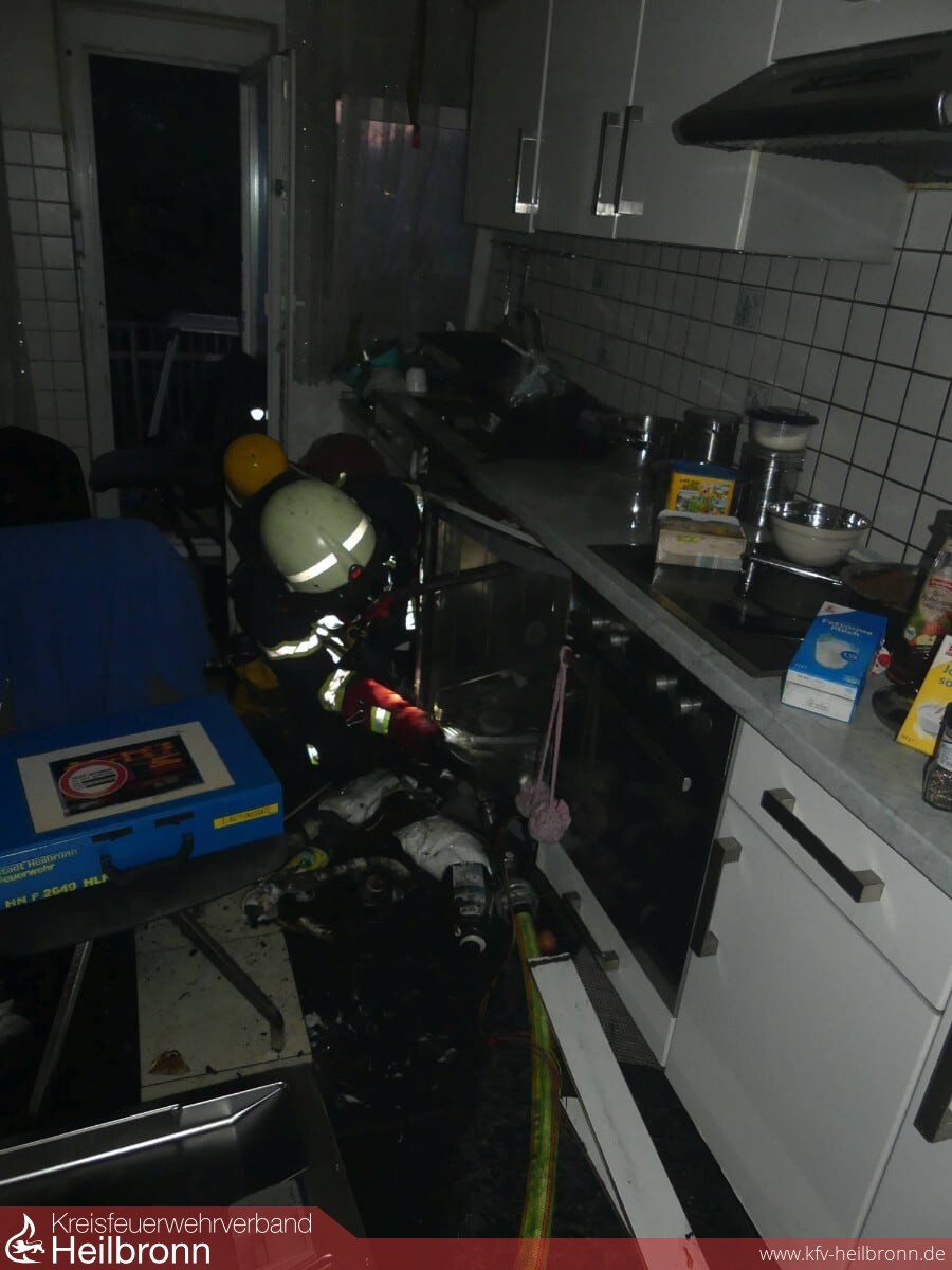 Der Integrierten Leitstelle für Feuerwehr und Rettungsdienst wurde gegen 19.40 Uhr ein Zimmerbrand in einem Wohngebäude in der Böckinger Straße im Stadtteil Neckargartach gemeldet. Der Löschzug der Berufsfeuerwehr sowie ein Löschfahrzeug der Freiwilligen Feuerwehr, Abteilung Neckargartach rückten zur Einsatzstelle an. Beim Eintreffen wurde der Einsatzleiter auf eine brennende Spülmaschine im zweiten Obergeschoss hingewiesen. Personen befanden sich keine mehr in dem Gebäude.